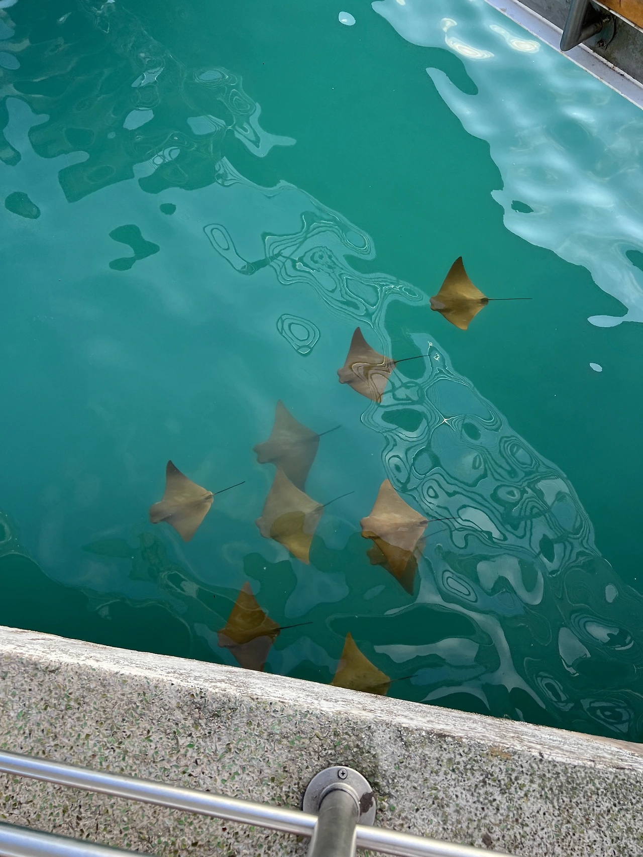 바로 숙소로 향해 휴식을 취하겠다는 내 계획은 기분 좋은 손님들의 등장으로 인해 약간 연기되었다. 선착장 아래로 황금소코가오리 여러 마리와 아기상어들이 지나갔고, 뒤이어 바다 거북이 물 위로 고개를 내밀었다. 바다사자와 갈라파고스 붉은 게만이 즐비했던 산 크리스토발 섬과는 사뭇 다른 경관이었다.