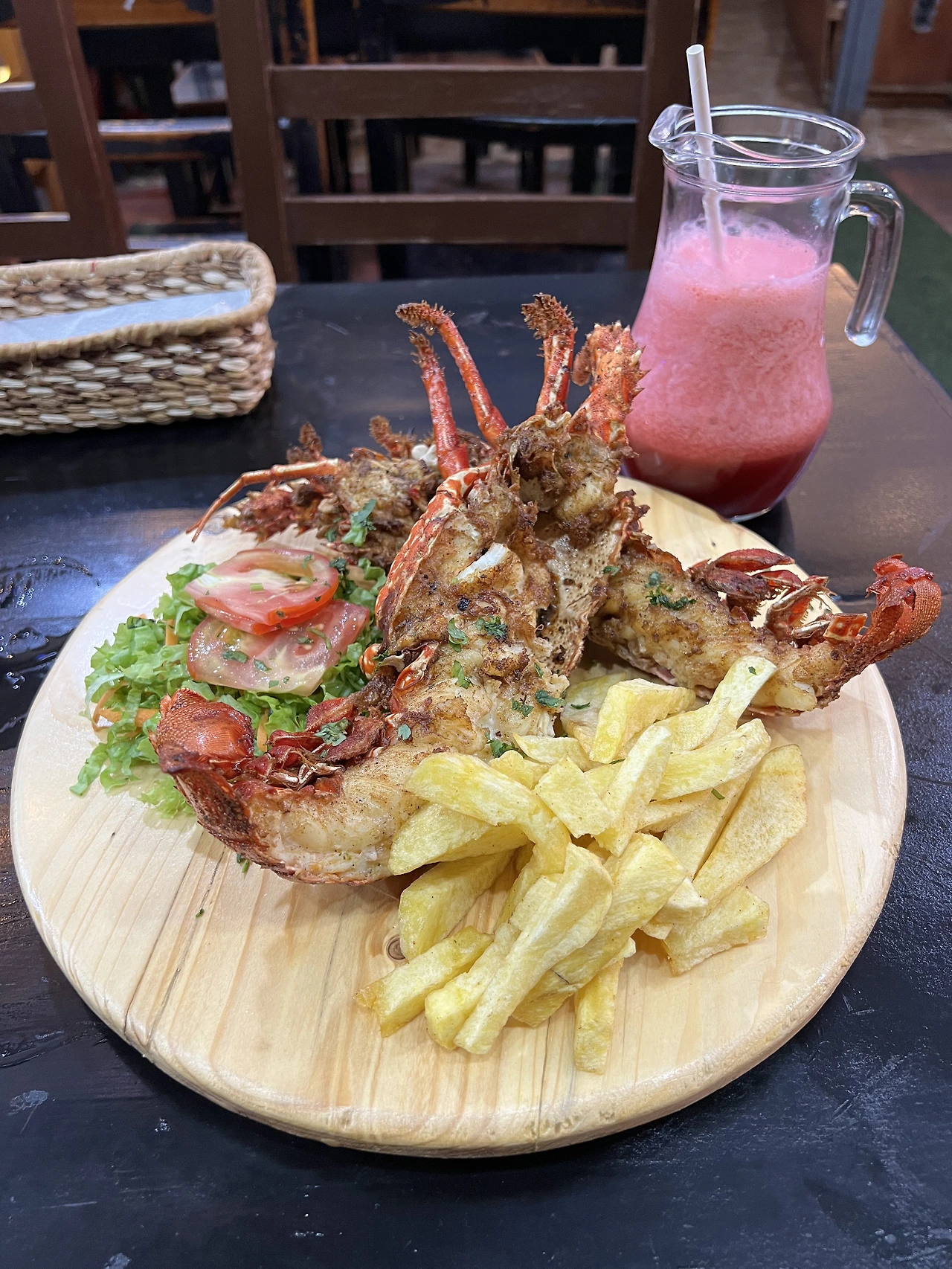 환상적이었다. 처음 입에 물 때는 적당히 짭조름한 바다 내음이 입 안을 감싸오다가도 한 입 크게 베어 물면 갑각류 특유의 달짝지근함이 배어 나왔고, 마지막에 마늘향이 조화롭게 감겨왔다. 살 자체가 탱글거리다 못해 쫀득거렸는데, 가히 충격적인 선도였다. 크기도, 가격도, 맛도, 나무랄 데가 없었다. 조금 짭짤하다 싶으면 감자튀김을 먹고, 버터향이 강하다 싶으면 모라 주스를 마시니 Perfecto였고, 식당을 떠나며 연신 Muy Delicioso를 외쳤다.