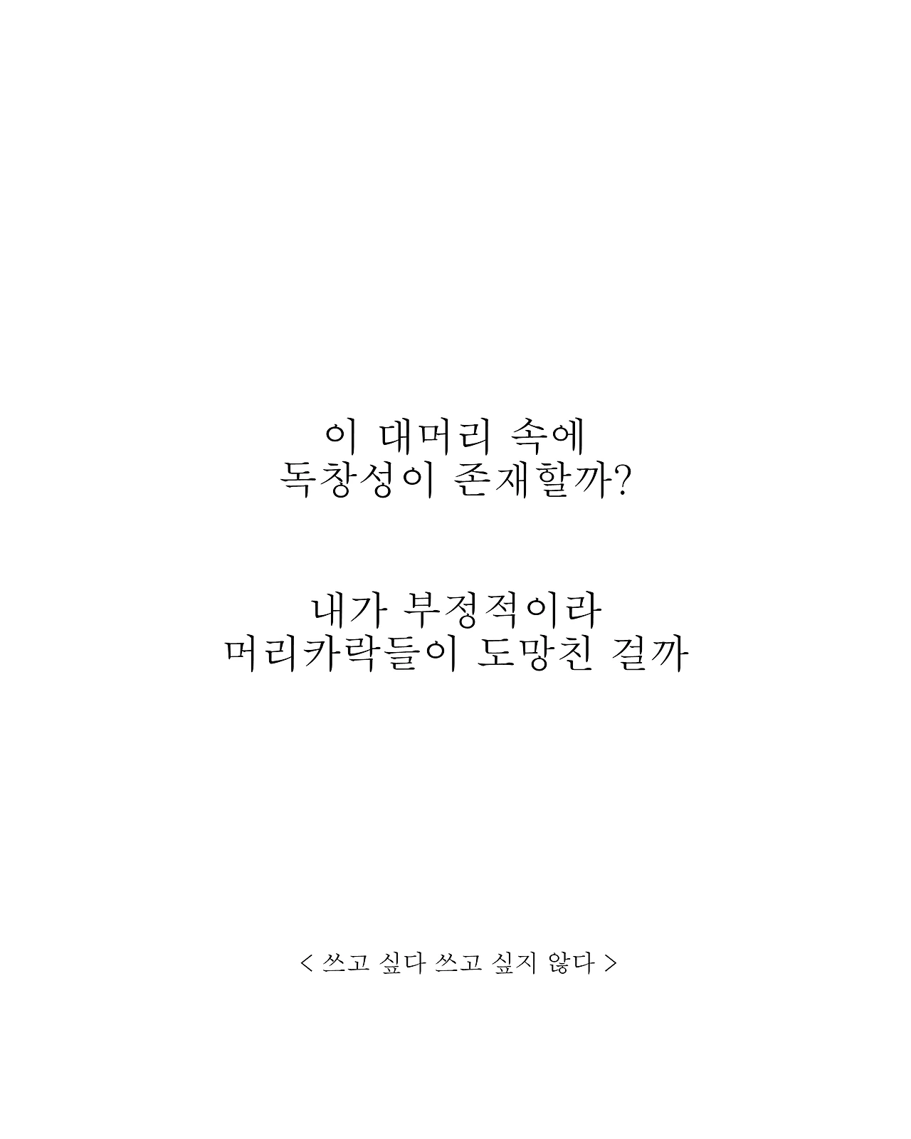 가끔 문장 하나에 일 각을 허비하곤 묻는다. 이 머리 속에 독창성이랄게 존재하긴 하는지 싶어. 그러다 보면 머리에 열이 오른다. 티끌만한 독창성으로 글을 쓴다. 오르는 열에 머리숱마저 티끌이 되고 싶진 않다는 생각을 하며.