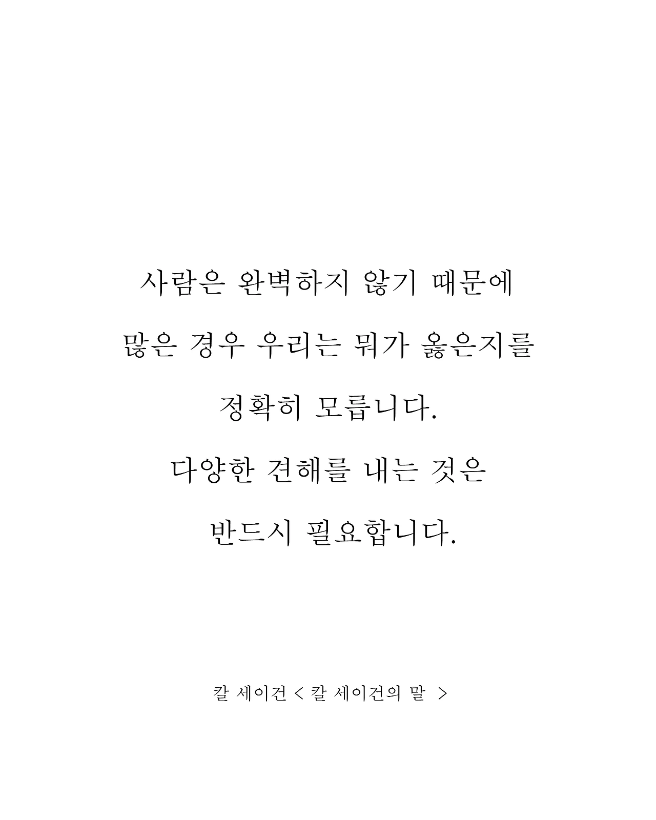 정치에서의 불협화음은 어디까지를 헛소리가 아닌 견해로 취급해야 하는가에 대한 이견에서 비롯된다. 의혹은 사실로 둔갑하고, 사실은 선택적으로 외면되는 사회에서 논의의 공간은 좁아진다. 사람은 완벽하지 않기에, 옳음을 판단하기 위해 다양한 견해를 내는 것은 반드시 필요하다. 그럼에도 대화 없는 견해는 청중 없는 음악회의 공허한 외침이라, 귀를 열어두어야겠다.