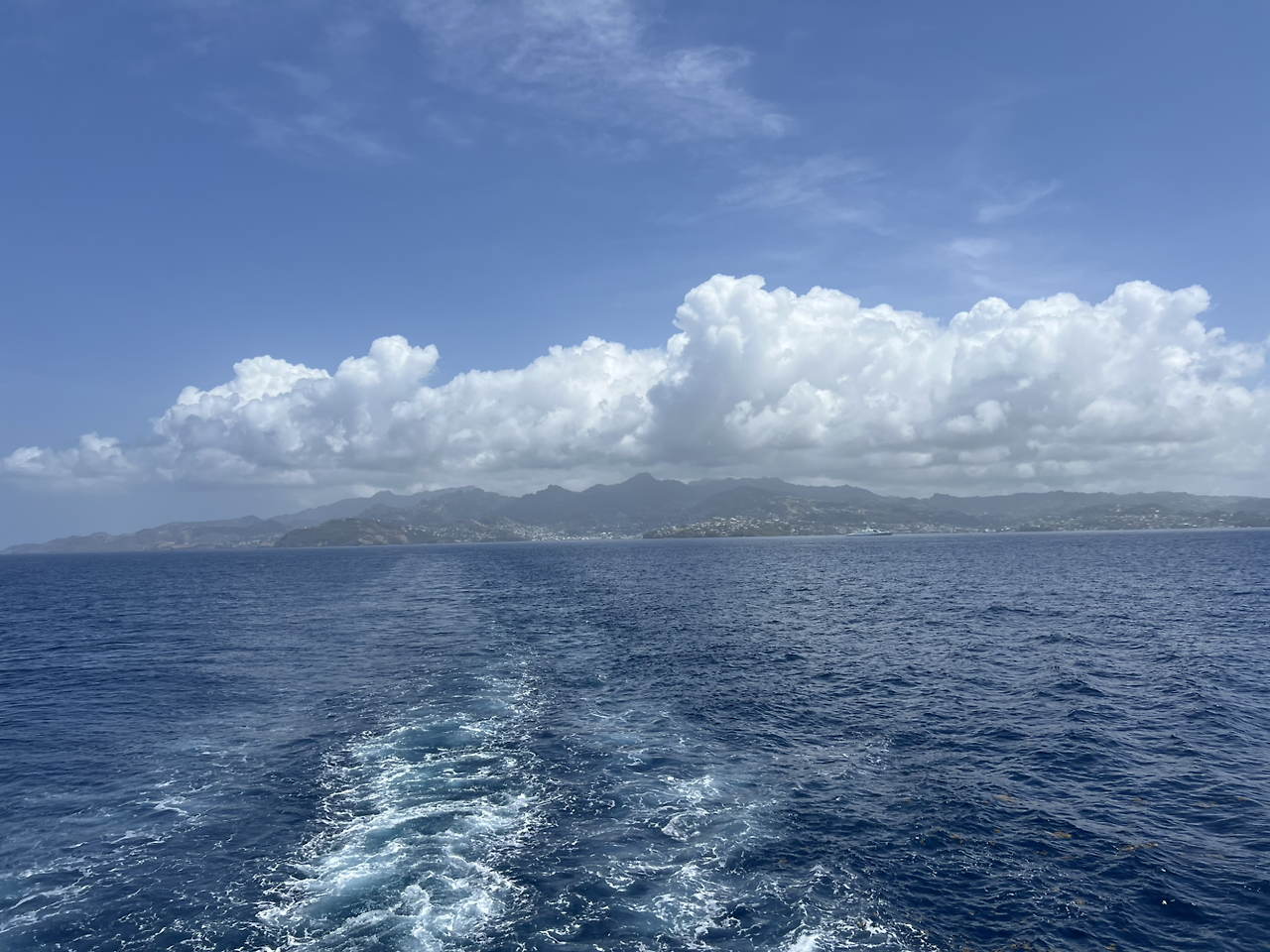 페리가 출발하기 15분 전에 우리는 항구에 도착하고, 왕복 40 동카리브 달러를 지불한 후 배에 오른다. 목적지는 베키아 섬의 포트 엘리자베스. 페리는 물을 가르며 나아가고, M과 나는 주거니 받거니 살아온 이야기를 나눈다.