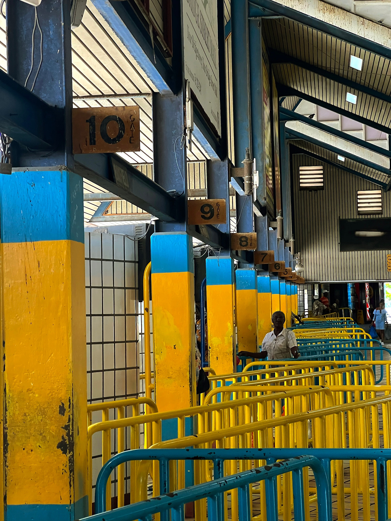 이후 도착한 버스 터미널 직원의 영어는 크레올에 가까워, 나는 세 번이나 공항으로 가는 버스 정류장이 어디인지 묻는다. 그럼에도 도저히 알아들을 길이 없어 옆의 직원에게 도움을 청한다. 왼손가락 하나, 오른손가락 둘. 12번.