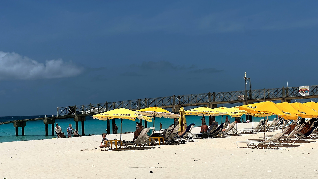2세기가 지났음에도 영국은 여전히 바베이도스의 해변을 점령하고 있다. 브라운즈 해변의 카리브 차양 아래는 백인이 한가득이다.