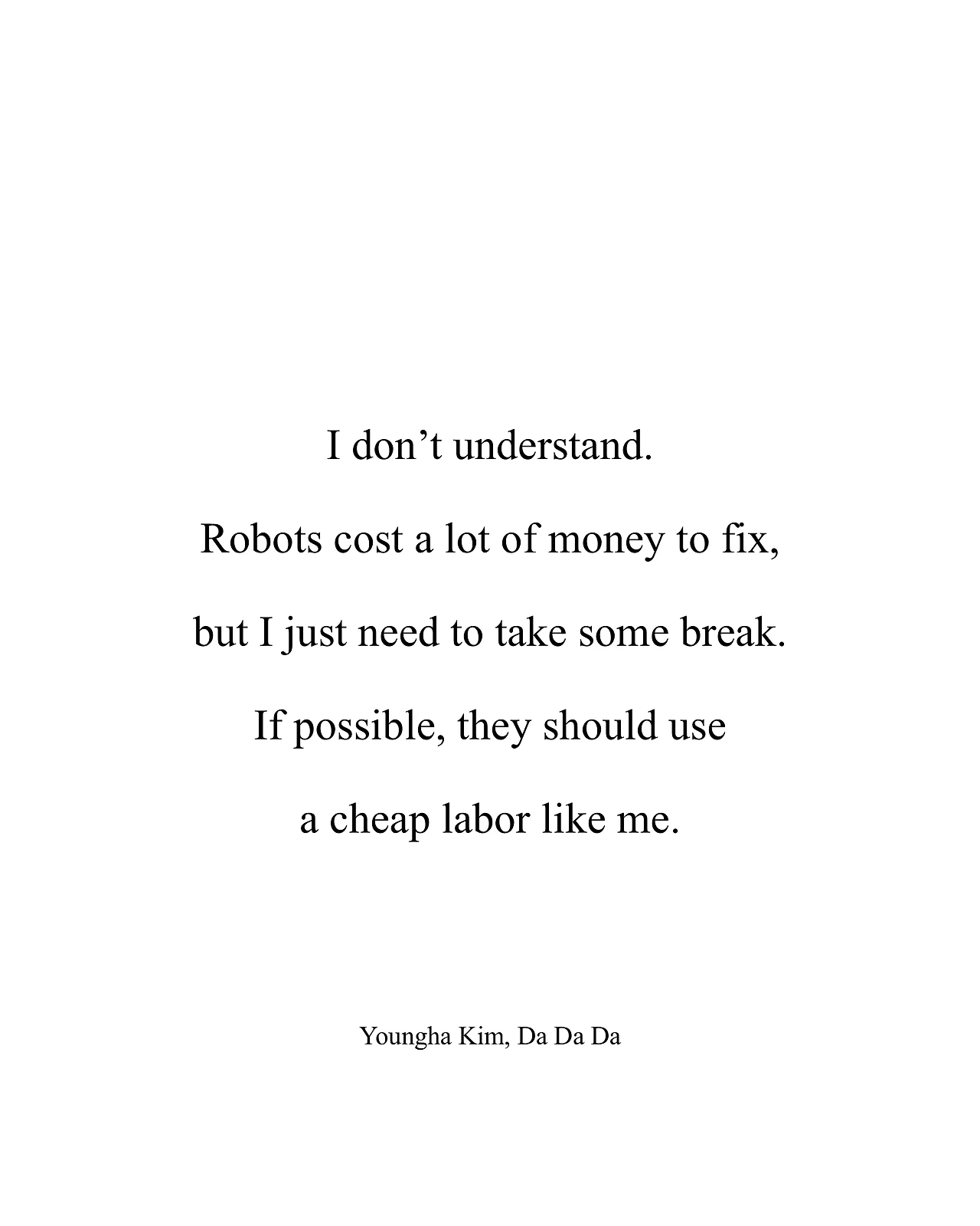 고숙련 일자리의 필요 이면에는 저숙련 일자리의 소멸이 있다. 기술이 발전하고 자동화가 가속화됨에 따라 경제 전체의 파이는 분명 커지고 있다. 그럼에도 동시에 파이의 부스러기가 아래로 떨어지리라는 보장은 사라져 간다. 돈은 돌고 돌아 그대들의 주머니를 가득 채웠건만, 고혈에 사혈까지 짜내도 돌 돈이 없다면, 누가 그 대가를 감당할 것인가? 부는 쌓이는데 실업자는 왜 늘어나는가. 파이를 나눌 마음도 없으면서 키우겠다고 노동자를 사회에서 축출하면, 실직자가 기댈 마지막 희망은 결국 체제의 전복, 혁명뿐이다. 엘리트주의는 피지배자의 수용과 체념 위에 서 있다. 지배와 피지배의 격차를 유지하고 싶다면, 채찍이 아닌 당근을 던져야 한다.