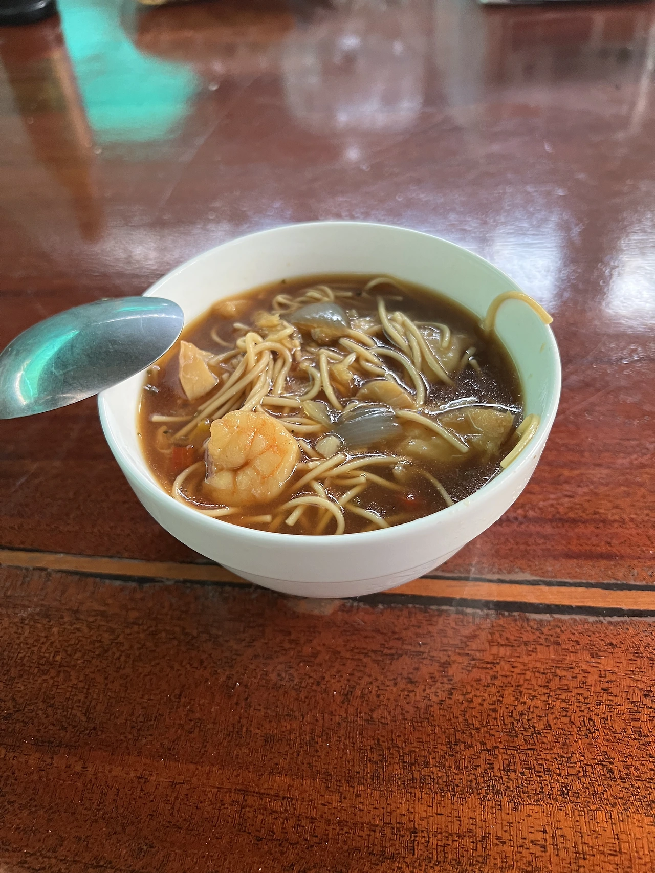 작은 그릇 하나에 물고기, 오징어, 게살, 홍합, 관자, 새우 등 들어갈 수 있는 거의 모든 해물이 가득 담겨 있었는데, 중간중간 부드럽게 혀에 감겨 들어오는 국수 가락들과 매끄러이 부서지는 양파 조각들이 탱글탱글한 해물과 버무려져 균형 잡힌 식감을 선보였다.
