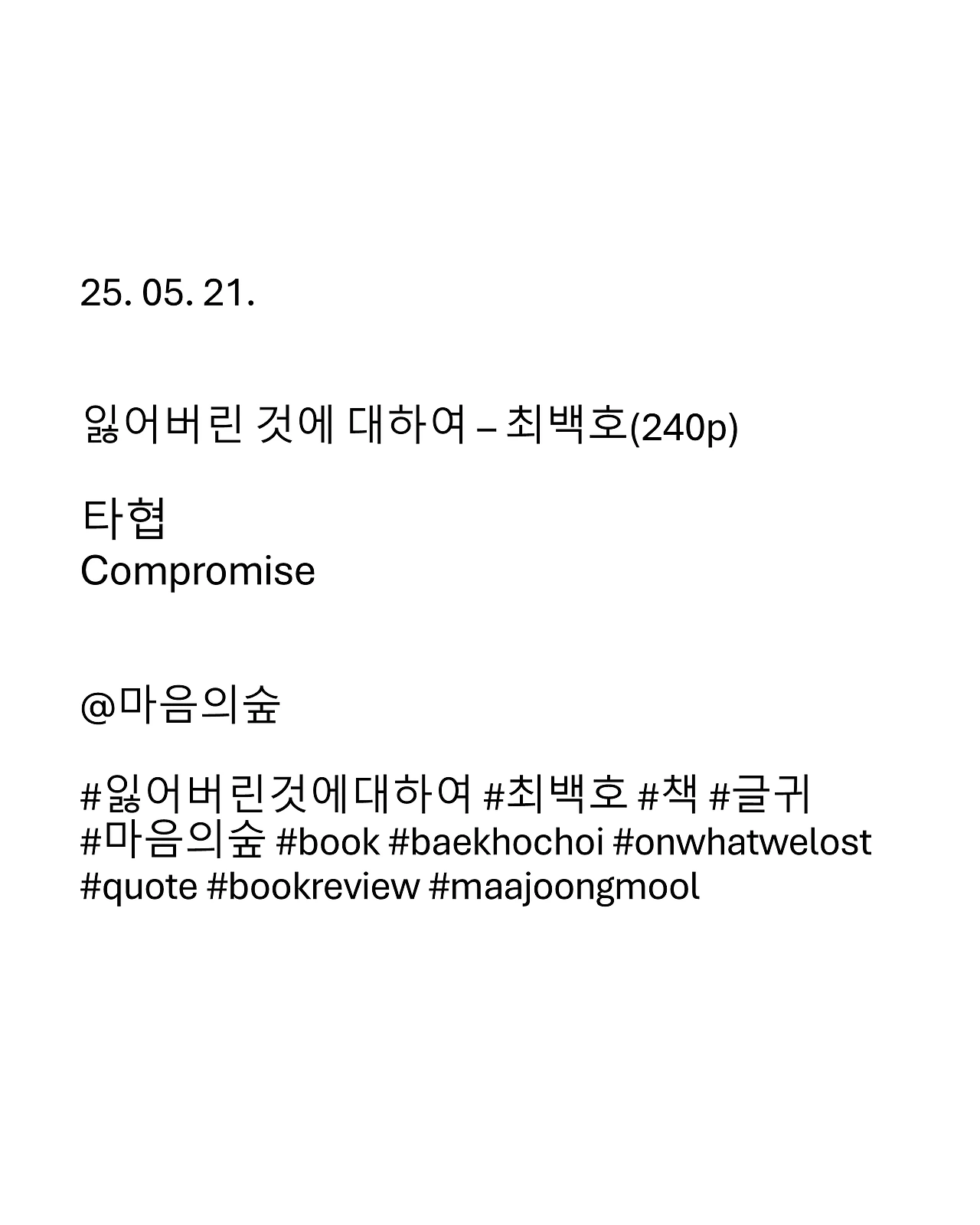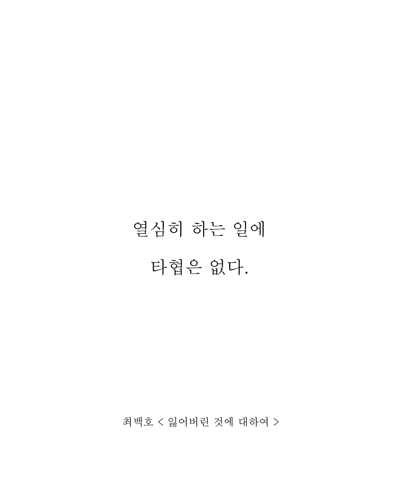 열심히 하는 일에 타협은 있을 수 없다. 타협한다면 그건 최선이 아니다. 노력에는 변명이 설 자리가 없어야 하며, 결과에는 후회가 남지 않아야 한다.