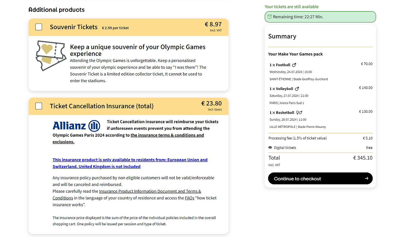 취소 보험의 경우, EU 및 스위스 거주자만 가입할 수 있기에 생략하면 됐다.
