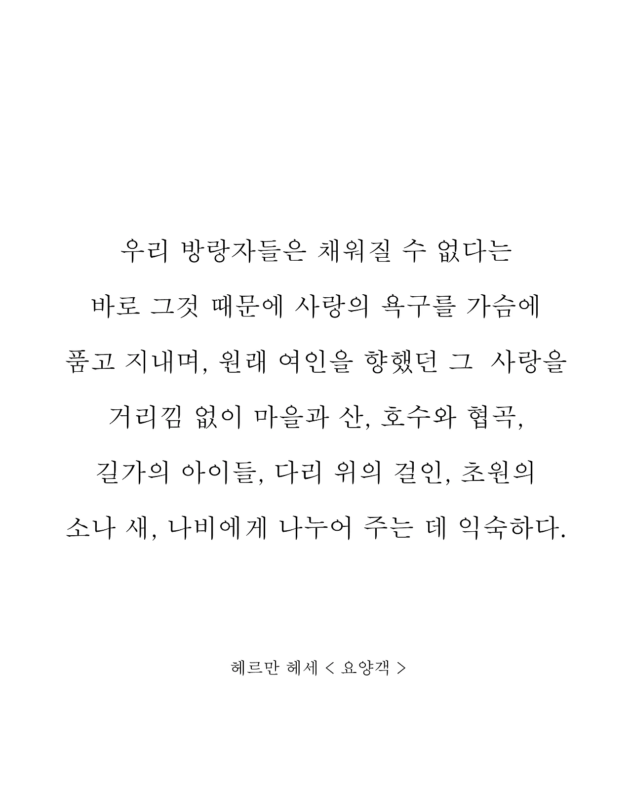 긁어모아도 아까울 사랑을 흩뿌리고 다니는 사람이 있다면 그건 여행자다. 여행자는 마음 붙일 곳을 찾지 못해 이곳저곳에 사랑을 흩뿌리고 그 모든 사랑의 흔적을 그리워한다. 그러나 언제까지나 흩뿌리고 다닐 수는 없고, 여행자마저 하나의 인간이기에 그 역시 결정해야 한다. 사랑해 정착할 것인지 혹은 그저 숙원을 위해 떠돌며 흩뿌리다 마모될 것인지.