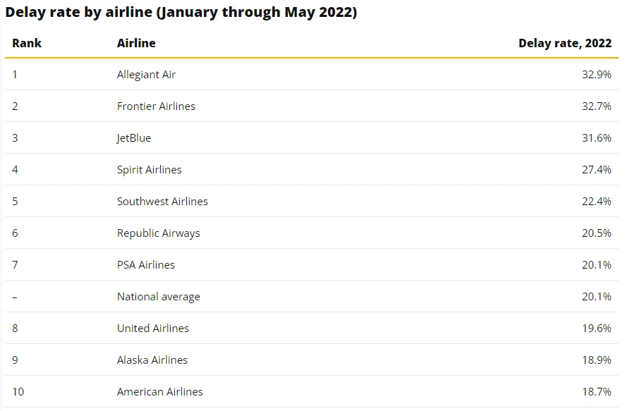 연착률이 10% 전후를 왔다 갔다 하는 국내 항공사들과 다르게, 미국 저가 항공사들은 최소 10% 후반, 심할 경우 20% 중반의 연착률을 기본으로 깔고 간다.