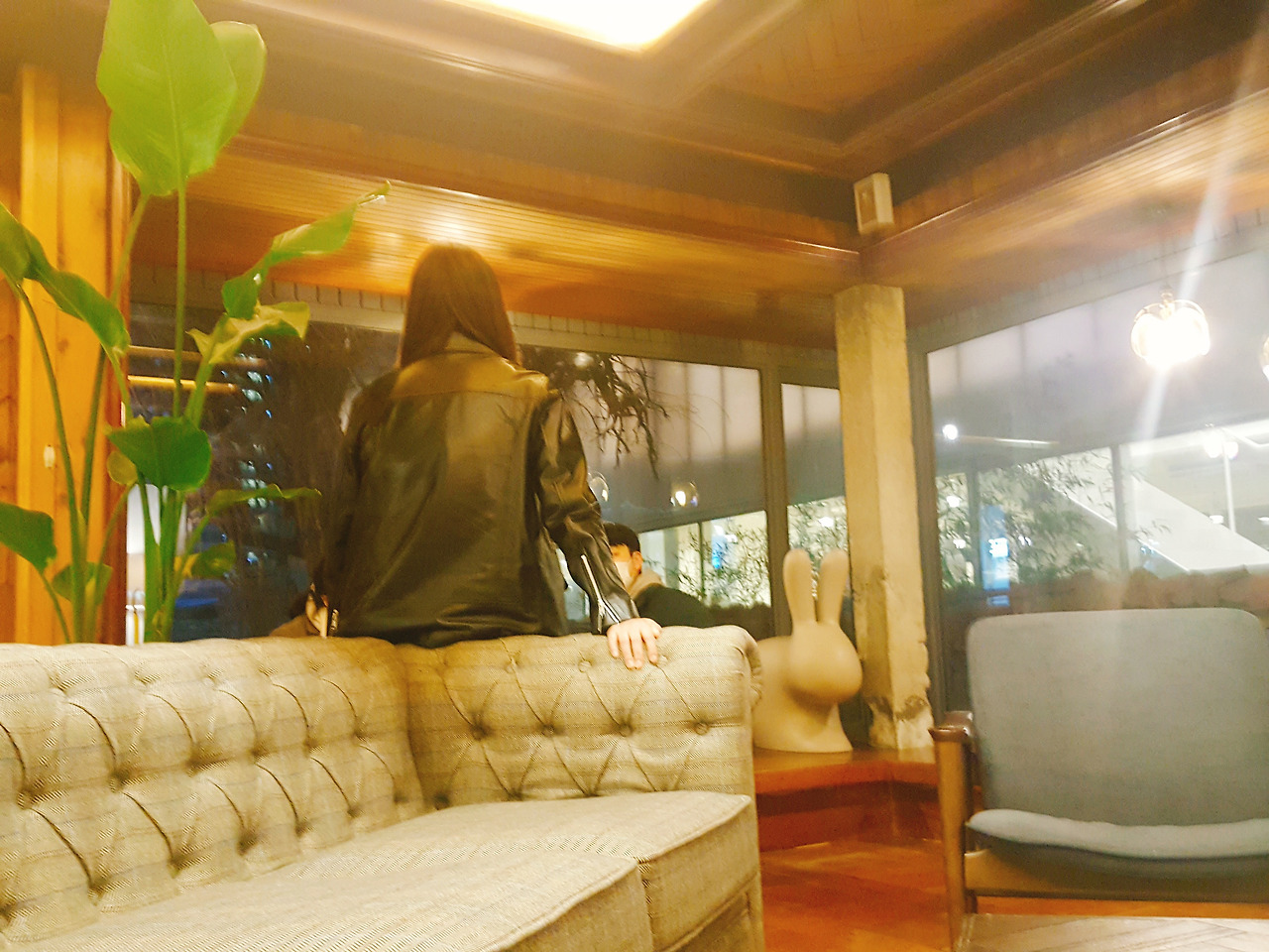 창 밖이 보이는 취향관 거실에 자리를 잡았다.