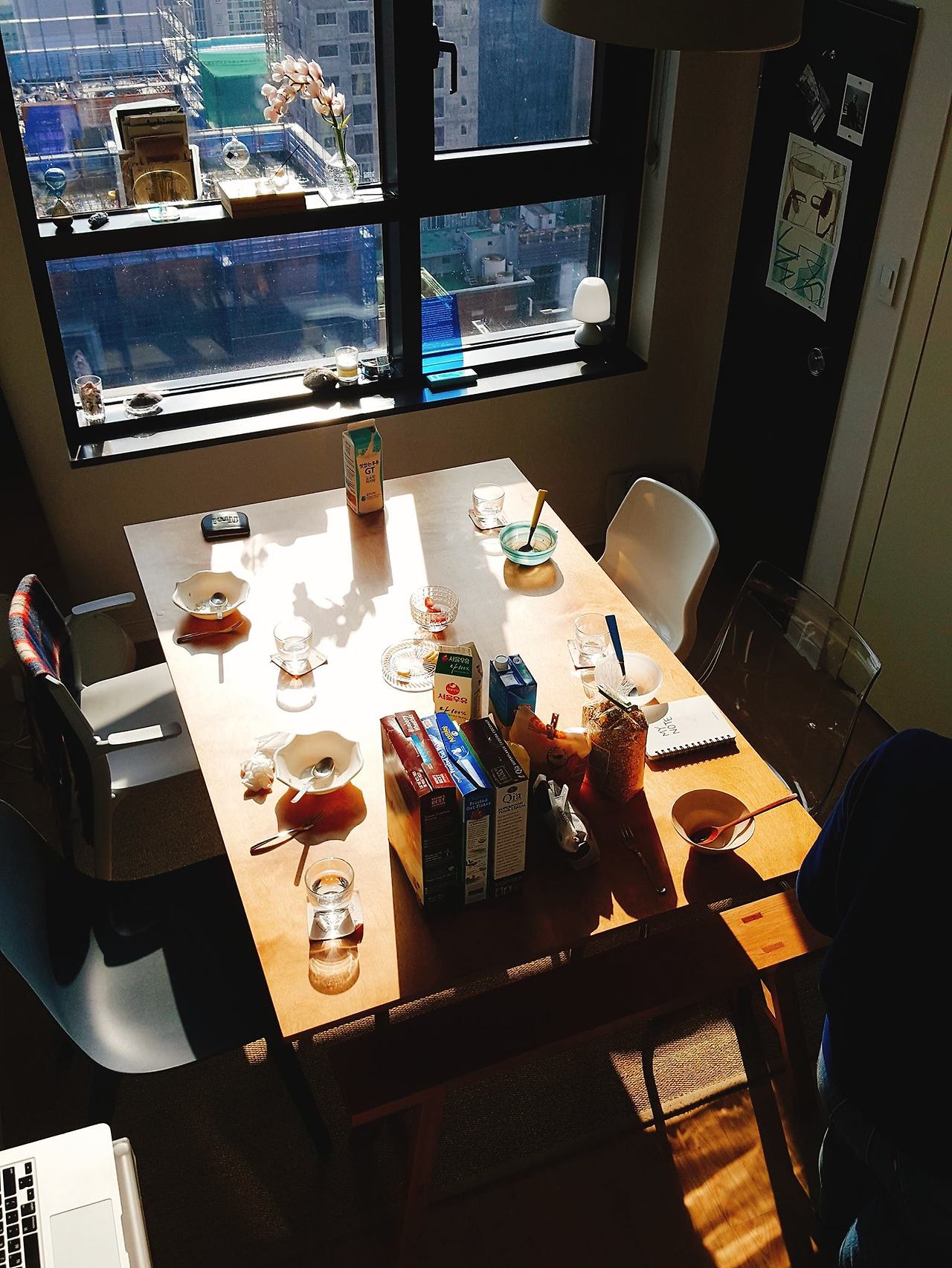 시리얼은 윤진님의 소중한 아침 식사였다. 흔히들 우리는 아침은 바쁘고, 아침식사를 챙겨 먹기 힘들기 때문에 간단히 떼우기 위함으로 시리얼을 먹는다. 그 때문인지, 시리얼이 '소중한' 아침 식사인지에 대해서는 의구심이 들었었다. 하지만 천천히 음미할 수 있는 여유가 곁들여진다면, 시리얼도 충분히 배부를 수 있는 '소중한' 식사임을 경험할 수 있었다. 아침의 여유가 필요했다.