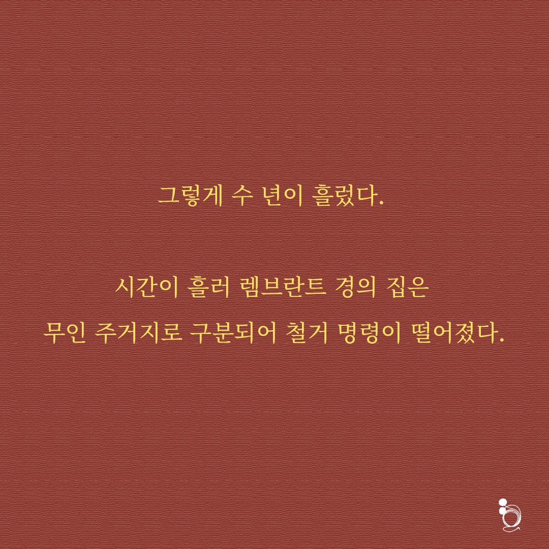 그렇게 수년이 흘렀다. 시간이 흘러 렘브란트 경의 집은 무인 주거지로 구분되어 철거 명령이 떨어졌다. 그곳에는 디지털 바로크 세상의 다음을 준비하는 데이터 센터가 건립될 예정이었다. 몇 명의 인부가 중장비를 이끌고 그의 집을 허물고, 땅을 파내기 위한 작업을 진행하였다. 디지털 바로크 세상에서 사람이 직접 작업하는 몇 안 되는 일이었다.