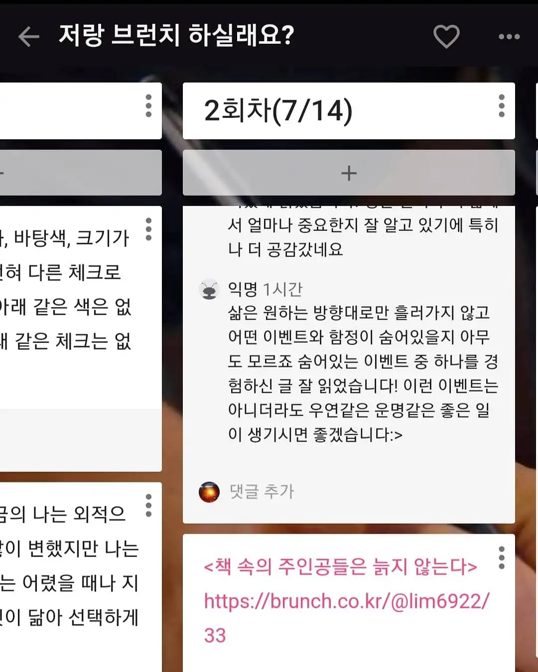 다음 주엔 '만일 ㅇㅇ라면'이라는 '만약에' 가정에서 시작하는 상상 글쓰기를 할 예정이다. 대학 수업 시간에 했던 경험이 있는 글쓰기다. 시간이 흐른 뒤에 알았지만 이때 나의 글쓰기에 대해서 교수님은 개인 블로그에 언급하셨다. 당장 영화화 할 수 있는 글이라고. 하지만 아직 영화화 되지 않은 소재로 남아있다. 아, 그렇다면 이걸 지금이라도?!? 그건 우선 청년강사랑 프로그램을 마친 뒤에 고민해봐야겠다. 어쨌든 무사히 2주차가 지났다. 더운 날이었다.