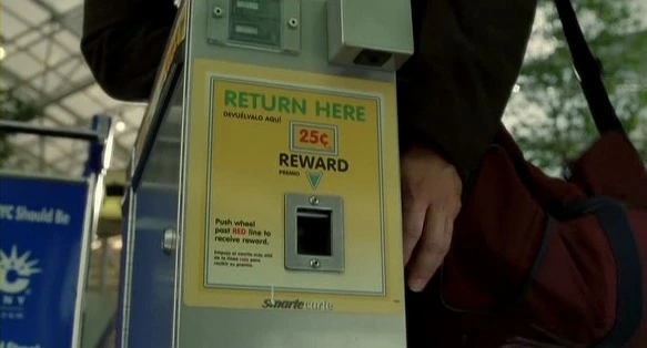 8. 나보스키는 공항 이곳저곳을 돌아다니며 주인 없는 카트를 찾아 반납하여 동전을 얻는다.
