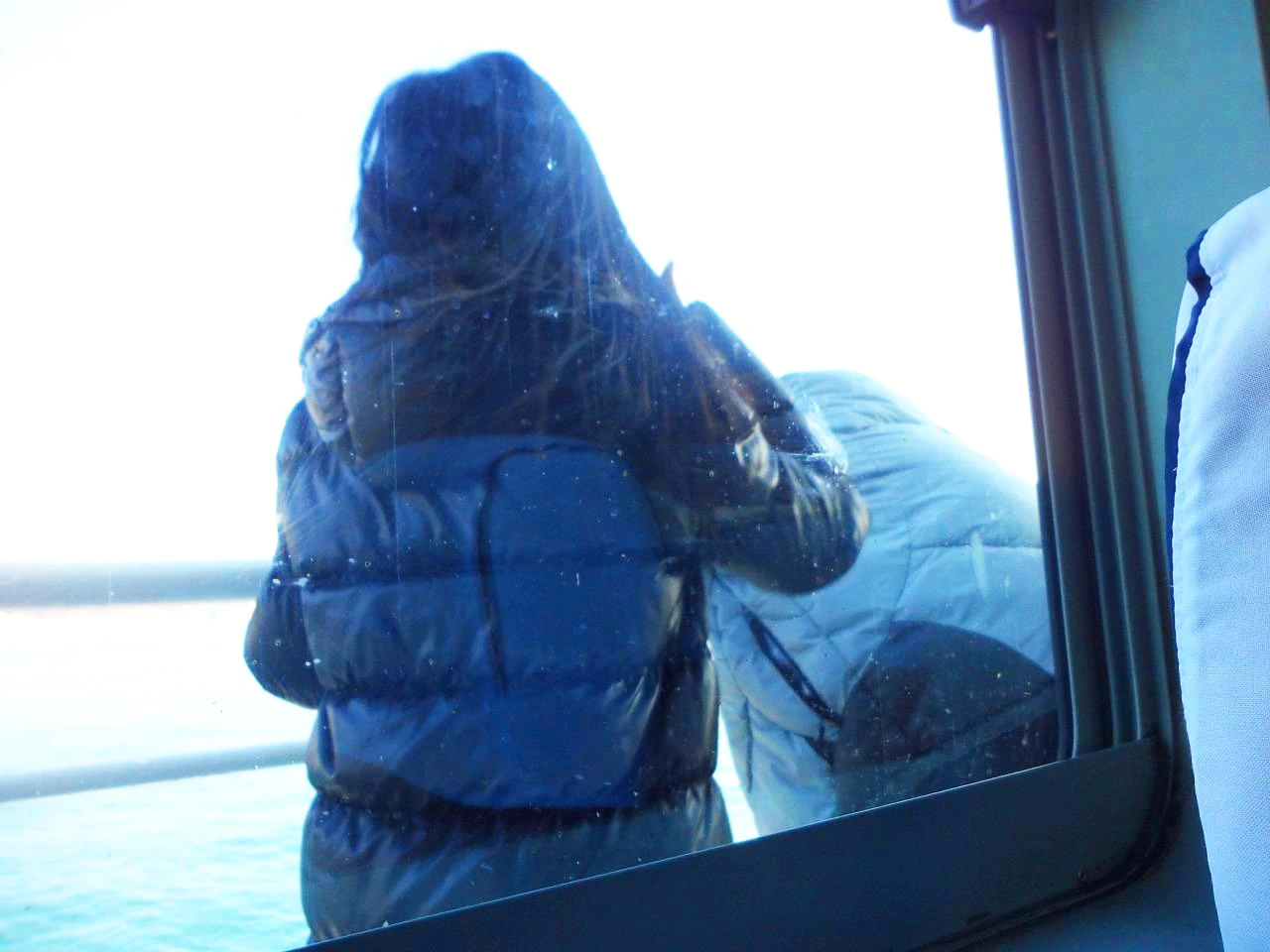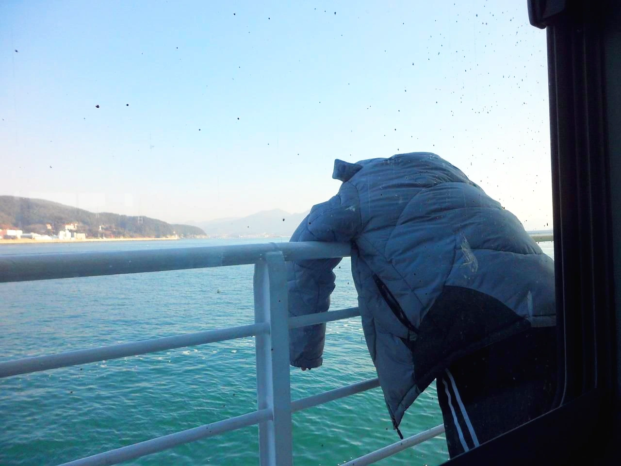 뱃멀미가 나서 객실 창문에 머리를 기대고 있다가