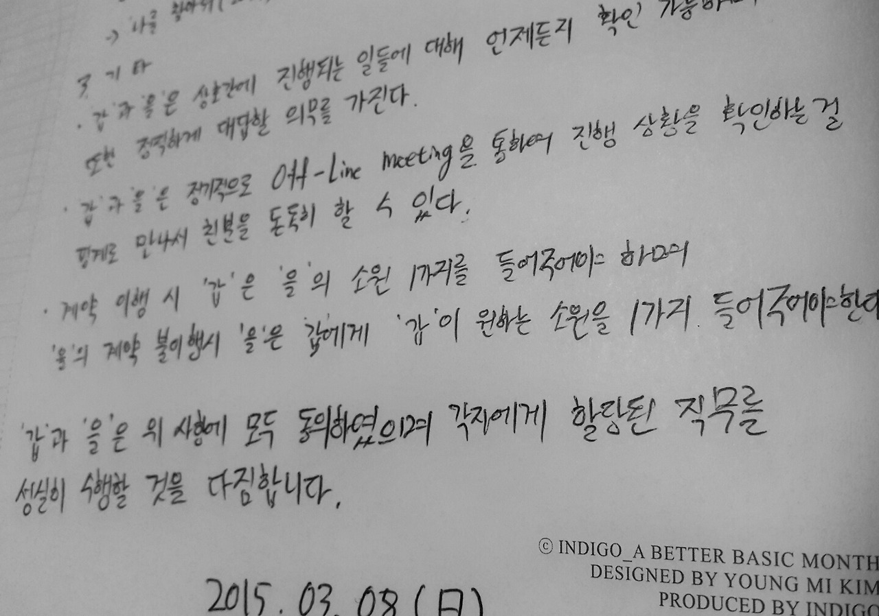 가능하면 계약서 쓰는 법 보다는 글씨 예쁘게 쓰는 법을 배웠어야 했다. 내가 써내려가는 내용들을 보며 눈을 반짝이던 희연이가 말했다.