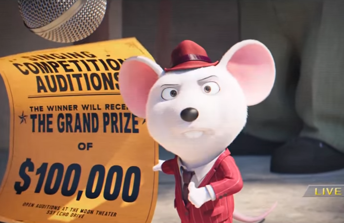 씽의 스토리는 매우 단순하다. 위 등장인물들이 처한 상황을 보여준 후 자연스럽게 이야기가 흘러가며 버스터 문이 극장을 되살리기 위해 친구 에디(존 C. 라일리 분)앞에서 오디션을 열겠노라고 선언한다. 오디션을 통해 공연 수익을 노리는구나 하는 생각이 바로 들었다. 슈퍼스타 K로 대표되는 오디션 프로그램에 익숙해졌기 때문일까.