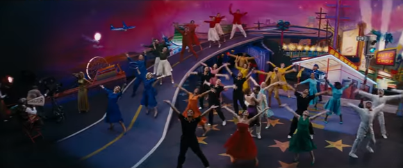 뮤지컬 신이 끝나고 위에 소개한 두 주인공들을 포함한 사람들이 향하는 곳이 화면을 통해 밝혀진다. 다른 모습을 하고 다른 노래를 들으며 차 안에 앉아있던 그들이 꿈을 이루기 위해 가는 곳, LA(LA LA LAND)다.