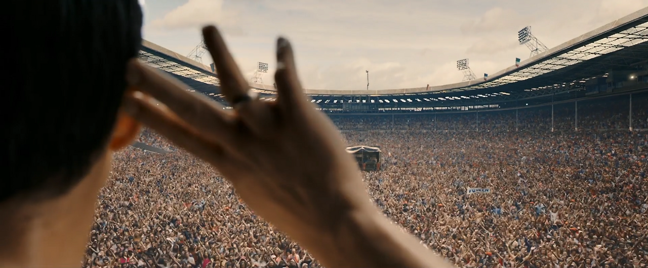 물론 이건 개인적인 리뷰니까 저렇게 생각할 수는 있지만, 사실 달랑 콘서트 영상만 스크린에서 본다고 해서 막 없던 감동이 폭풍처럼 밀려들 거라고 하기엔 다소 억지스러운 면이 있을 것 같다. 하지만 마지막 20분간의 공연 장면에 대해 여러 사람들이 눈물을 쏟고, 뭐라 말로 표현할 수 없는 벅차오름을 느꼈다는 간증(?)이 쏟아지고 있는데 이것은 영화의 지난 장면들을 통해 관객들이 프레디 머큐리의 감정선, 나아가서는 퀸의 삶과 감정에 성공적으로 몰입했다는 것이 아닐까 싶다. 위에서 다른 멤버들의 비중 이야기를 잠깐 했었는데 그 이야기를 다 담았다간 오히려 이야기의 집중도가 흐트러져 관객들의 몰입을 방해했을 것이다.
