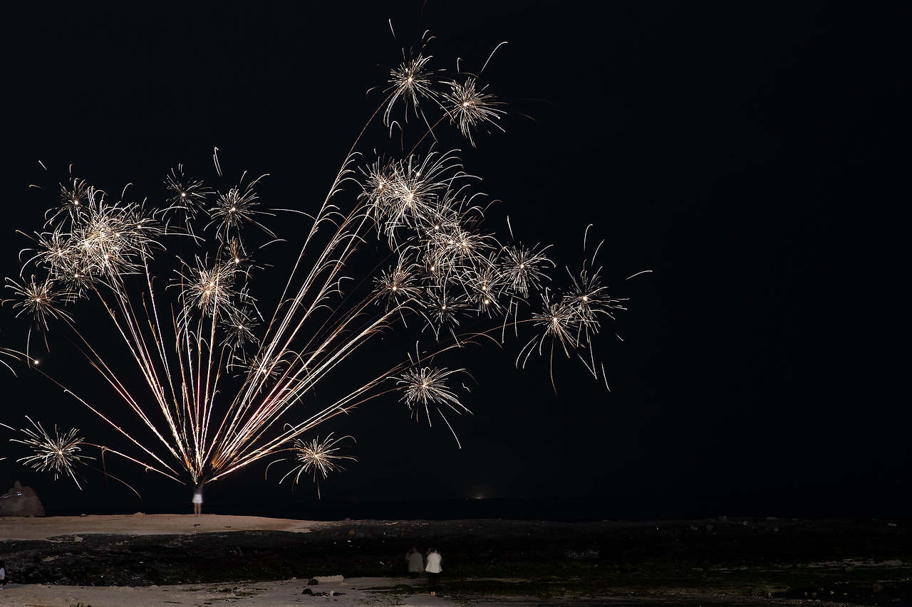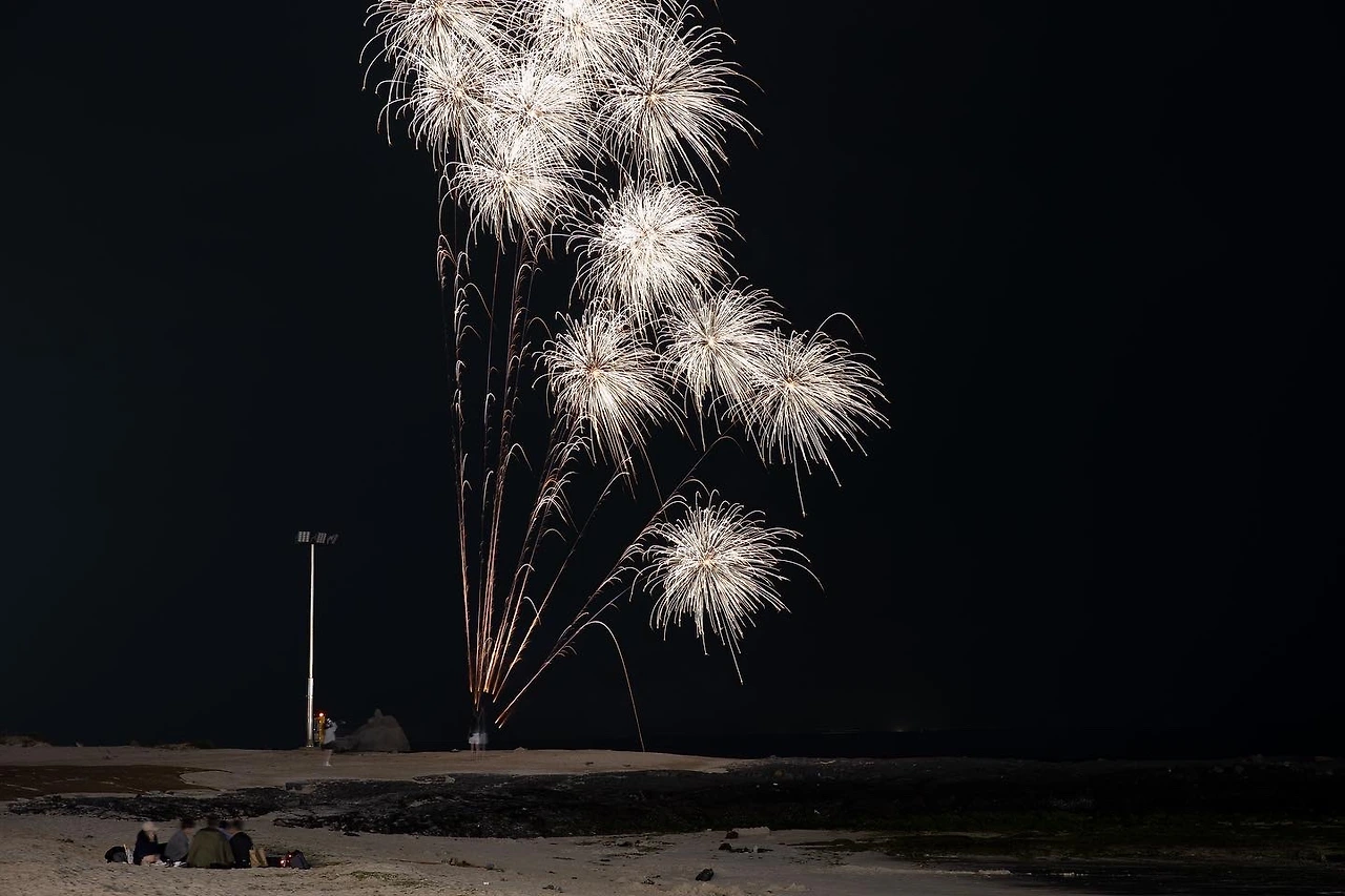 곧이어 두 번째 폭죽과 세 번째 폭죽이 동시에 터지면서 잔잔했던 해수욕장의 밤하늘은 폭죽 소리와 함께 불꽃으로 가득 차 있었다. 그리고 우리 모두 그 폭죽을 하염없이 바라보고 있었다.
