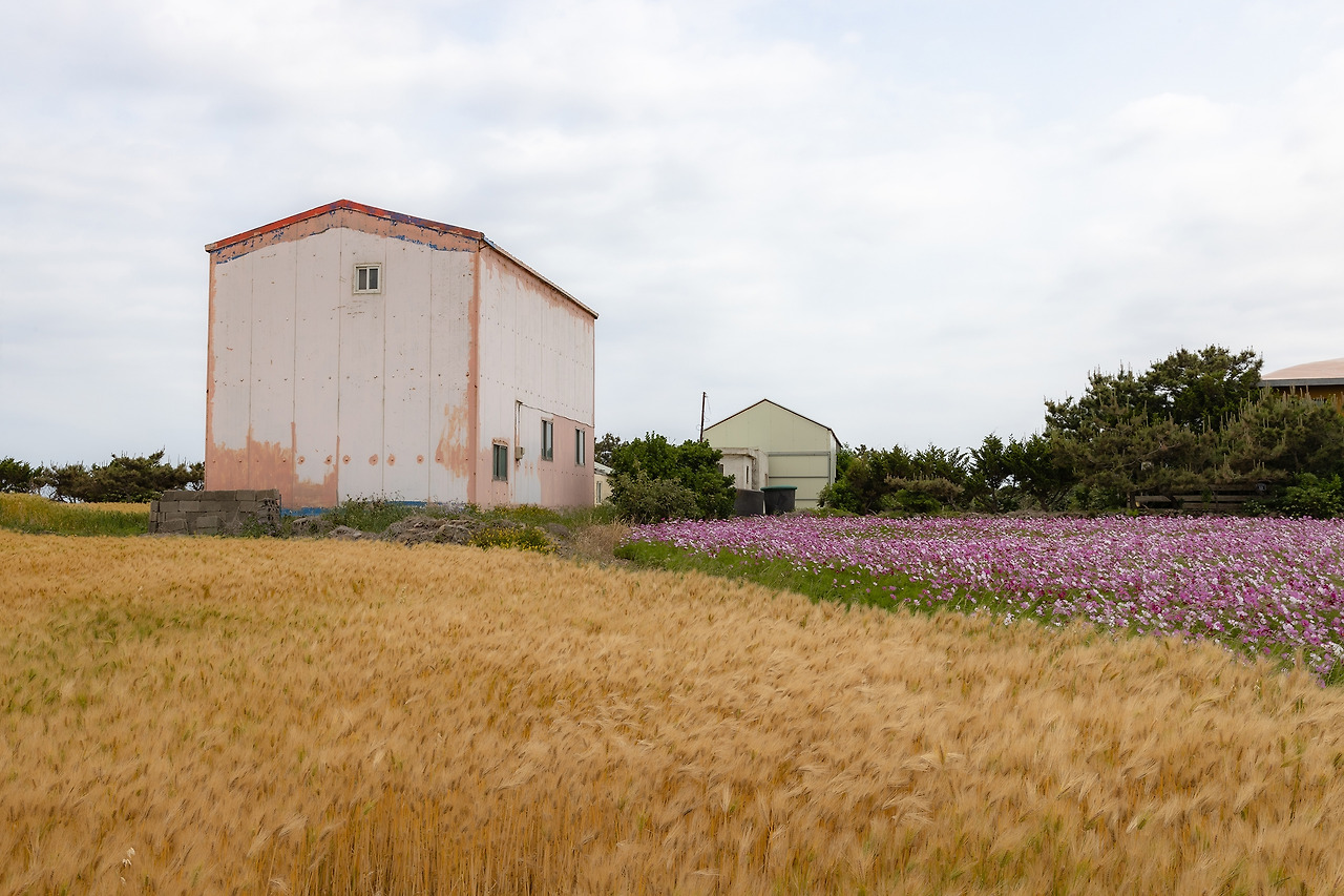 지난 2달 사이에 가파도의 모습은 많이 바뀌었다고 해야 할까? 봄소식을 알려줬던 노란 유채꽃은 사라지고 황금빛 비단으로 뒤덮인 청보리밭의 보리 그리고 코스모스가 만개해 있었다. 사실 가파도는 청보리밭으로 유명한데 특히나 3월~5월 그 사이 즉, 4월에 푸른색으로 물든 청보리밭의 모습과 꽃들이 만개해있는 모습을 만날 수 있다. 하지만, 필자가 가파도를 방문한 건 5월 중순이었고 청보리는 푸른색을 빼기 시작하며 황금빛 비단을 덮어둔 듯한 모습으로 탈바꿈하고 있었다. 사실 4월에 청보리가 절정인 모습을 보고 싶었지만, 타이밍이 안 맞아 5월에 방문하게 되었고 늦은 방문은 오히려 나에게 가파도 청보리밭 = 푸른 청보리밭 고정관념을 바꿔주는 계기가 되었다. 누구나 한 번쯤 이런 경험은 있지 않는가? 축제 혹은 절정의 모습보다 뒤늦게 방문했을 때 오히려 자신이 생각해왔던 모습과 다른 모습이 펼쳐져 있었고 그 모습은 나에게 또 다른 매력을 선사해줬던 기억이랄까?