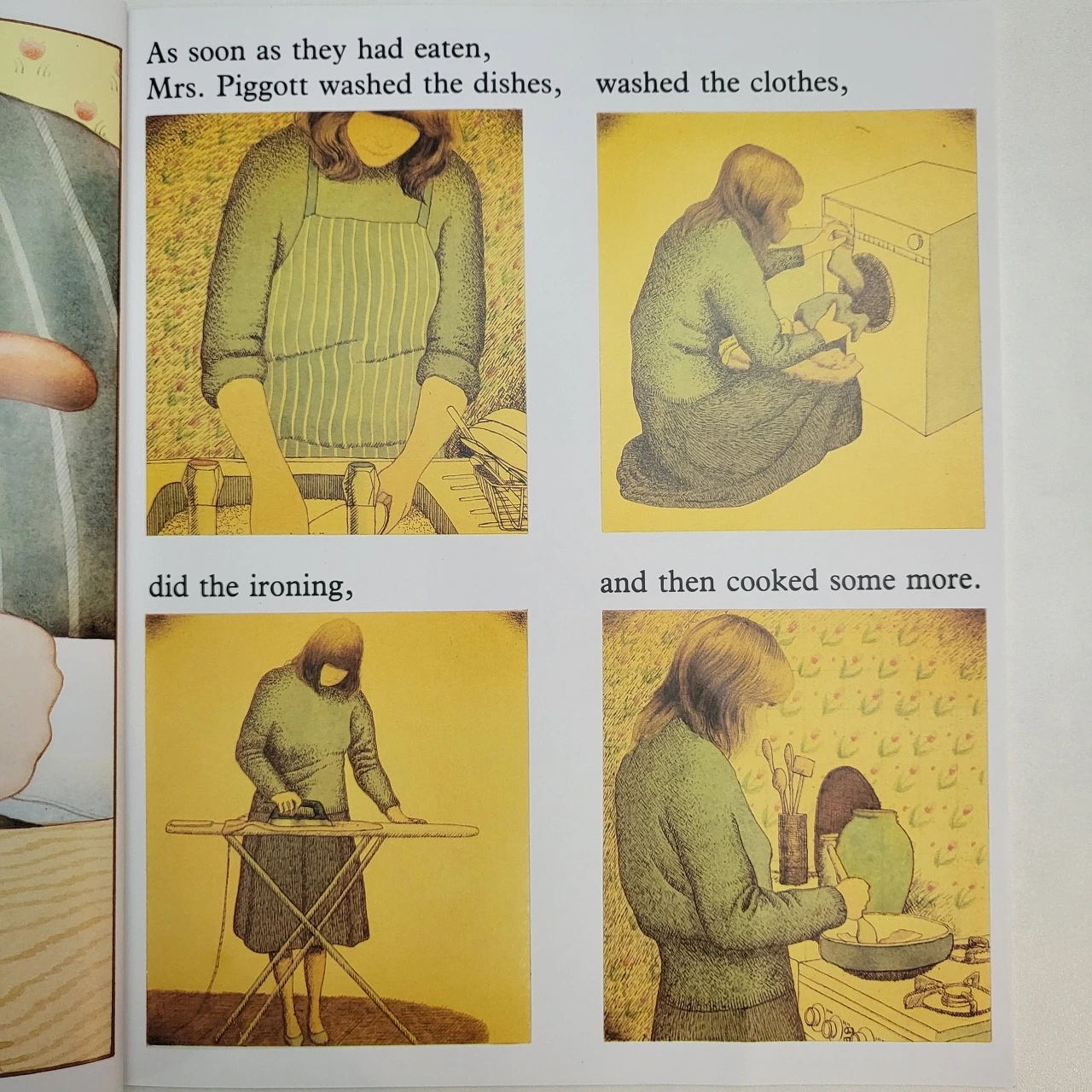 아이들을 위한 책이긴 하지만 꿈과 희망의 환상의 세계만을 담고 있는 책은 아니에요. 한 장, 한 장 책장을 넘기며 글과 그림들을 따라가다 보면, 이 책에는 1980년대 당시 서구에서 이슈가 되었던 남녀평등과 성역할 차별 금지에 대한 사회적 메시지를 담겨 있다는 걸 알 수 있어요. (여성의 사회활동은 증가했지만, 집안일은 여전히 도맡아 해야 하는 상황에서 성평등 이슈가 제기되고 있는 시점이었어요.) 생각만 해도 무겁고 어려운 주제를 이토록 사랑스럽고 명확하게 전달할 수 있다니, 정말 놀라운 작가입니다.