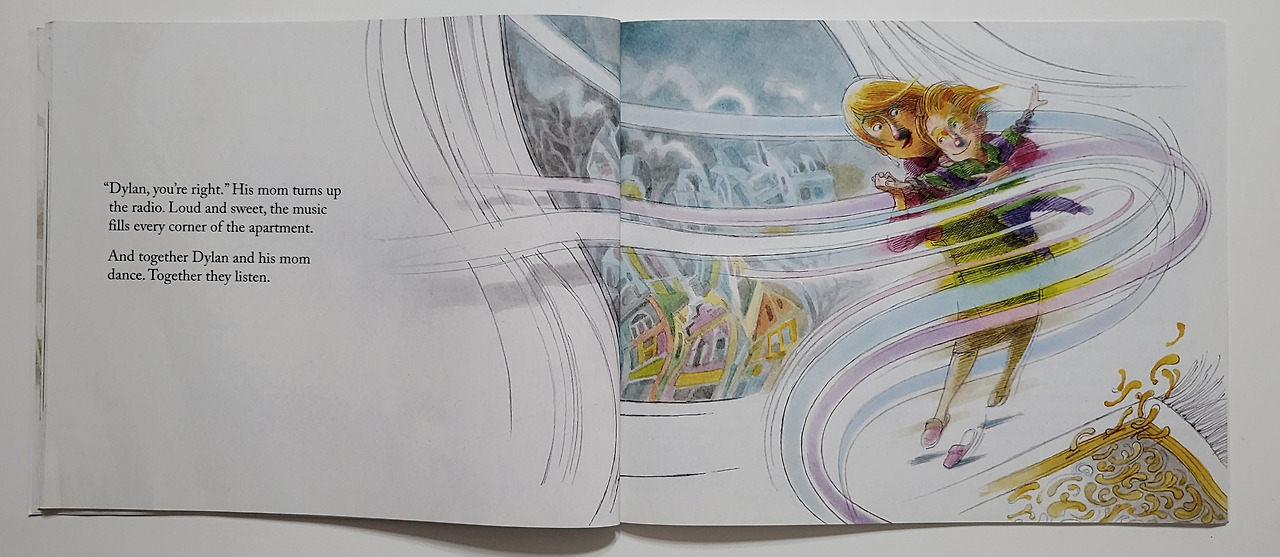 딜런 덕분에 온갖 해야 할 일에 몰입해 있던 엄마도 서서히 긴장을 풀어요. 그리고 둘은 음악에 맞춰 함께 춤을 춥니다. 그렇게며 이야기는 끝을 맺지요.