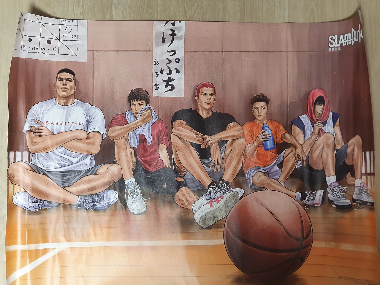 2018년 신장재편한 <슬램덩크>(전 20권) 구매 선물로 받은 포스터. 벽에 붙여놓기엔 다소 큰 2절지 크기다 보니, 아직 책장 위에 돌돌 말려 있습니다.