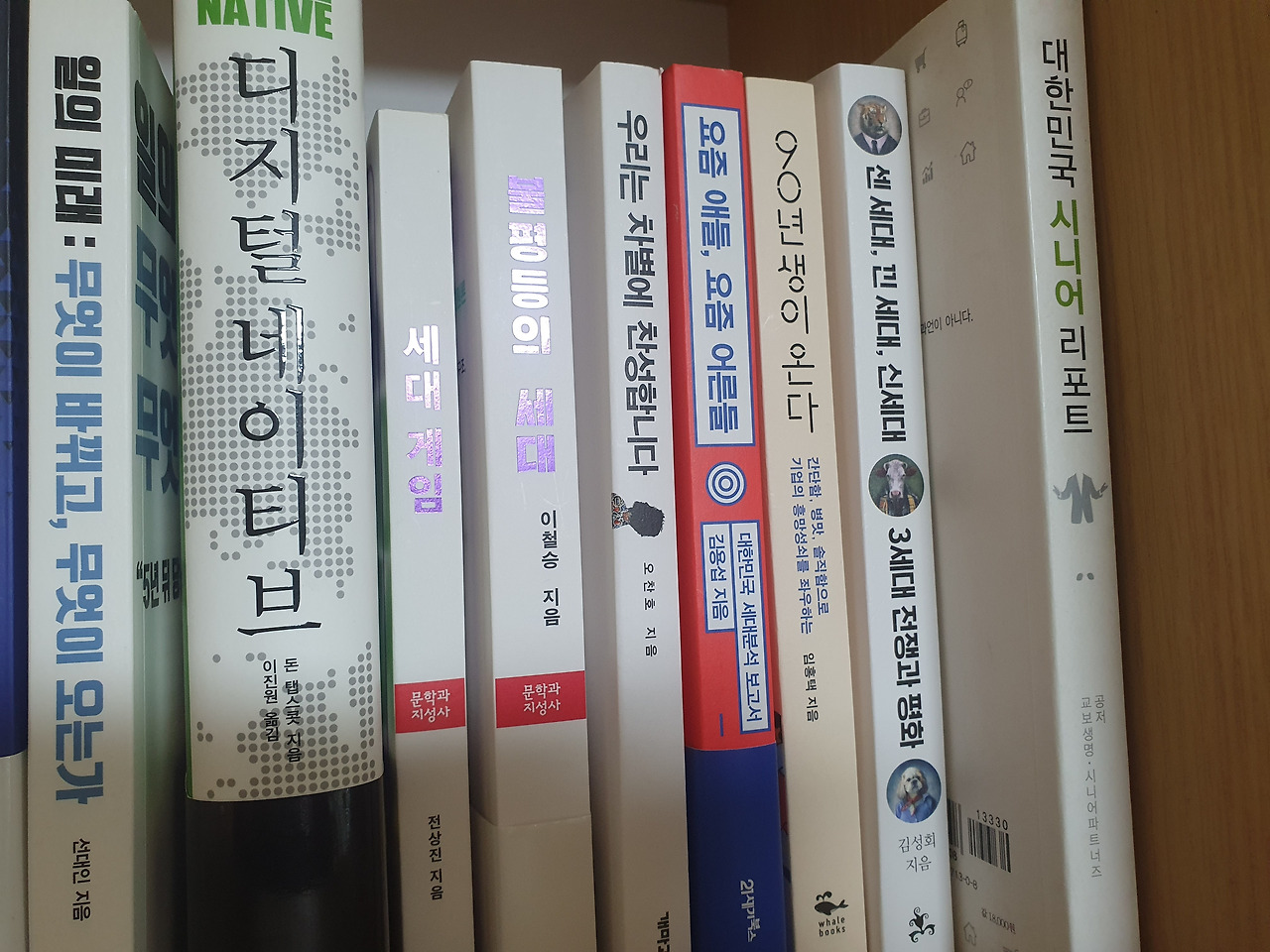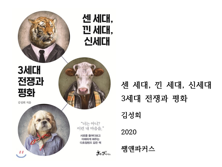 그새 트렌드를 타고 여러 사회과학 도서들과 에세이들이 나왔습니다. 특히 이 <센 세대, 낀 세대, 신세대 3세대 전쟁과 평화>는 장르는 다르지만, 제가 다루려 했던 소재와 전하려 했던 주제를 제대로 담아낸 것 같습니다.