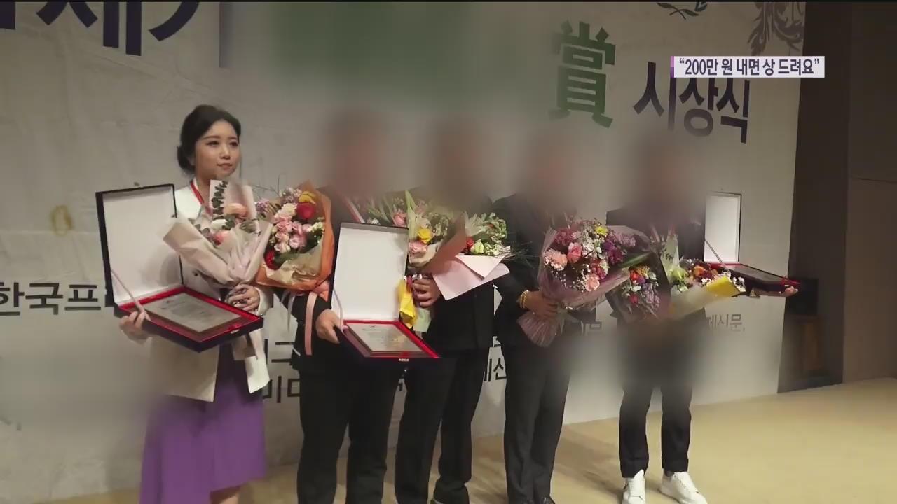 돈만 내면 수여하는 상, 언론에서도 주목해 감시하고 있습니다. ( 관련 KBS 뉴스 보도 영상 캡쳐본)