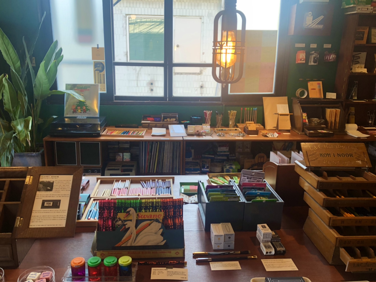 지도를 보며 찾아 간 그곳은 연필들이 가지런히 있는 비밀공간 같았다. 내가 병원에서 느낀 답답함, 무서움, 불안함, 긴장감, 슬픔을 다 지울 수 있을 것 같은 아늑하고 재미있는 공간이 꾸려져 있었다. 나무로 만든 가구들, 나무로 만든 연필, 어둡지만 창문으로 들어오는 조도가 낮아진 오후 3시 넘어서의 빛, 은은한 조명, 사각사각 연필 쓰는 소리 모두 기분을 전환하기 알맞은 곳이었다. 의자가 있다면 조용히 그곳에서 한참이고 있고 싶은 공간이었다.