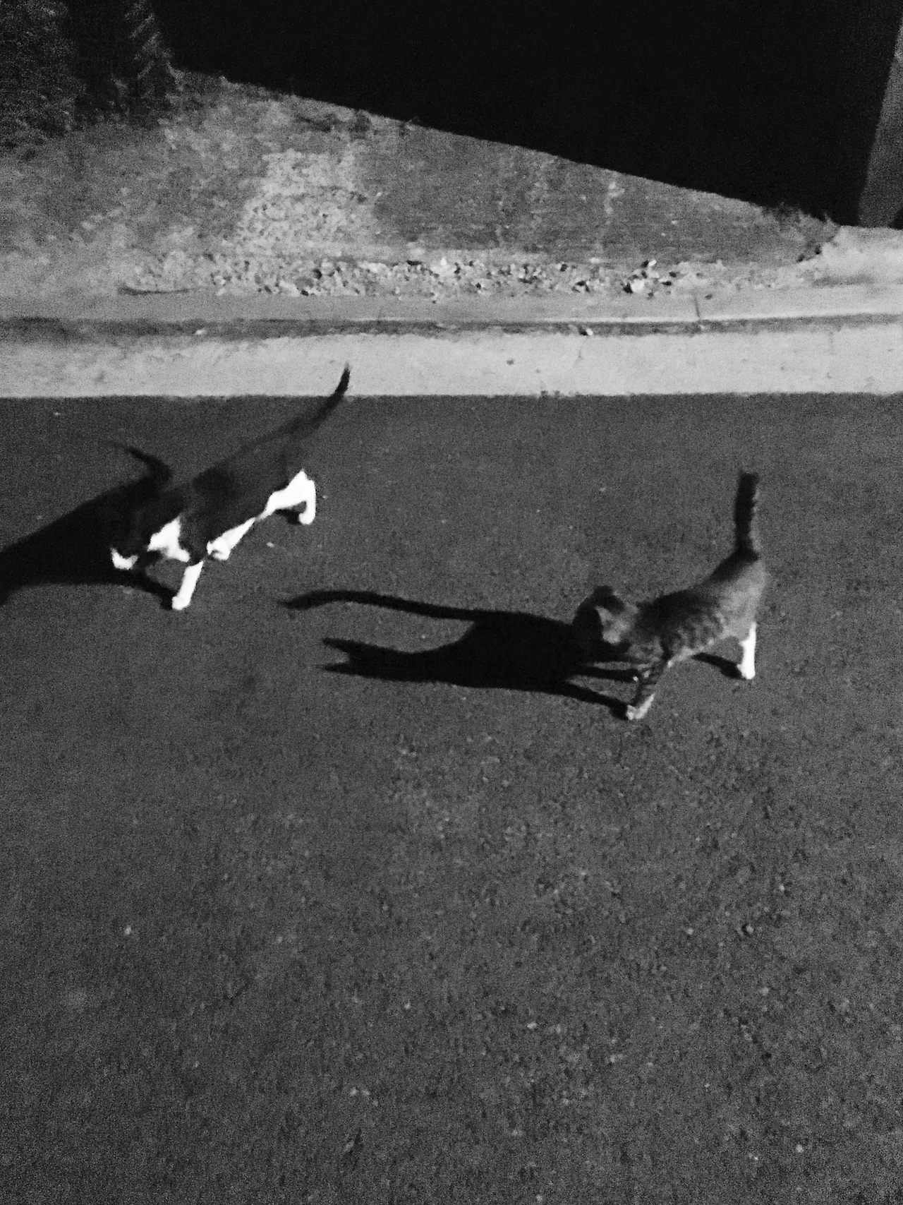 점박이가 혹시 또 갑자기 물진 않을까 쫄았어. 게다가 하악질까지 하니까 얘가 언제 갑자기 감정이 터져서 옆에 있는 날 물어버리진 않을까 했다고. 아무래도 기분이 나빠져 무언가를 문다면 자기 새끼보단 날 물지 않을까 하는 생각을 그 와중에 했던 거지. 발목 같은 덴 물리면 꽤 아프겠지? 이러고 있었다. 근데 안 물더라고. 그래서 앉았고, 이야길 좀 했지. "새끼냐?"라거나 "오랜만이네?"라거나 "또 물거냐?"라거나 "먹을 거 없는데"라는 식의 이야길 아주 작게, 아무도 못 듣게 했다고. 고양이들만 들을 수 있는 고주파를 쏠 수 있었다면 아마 고주파로 대화했을 거야. 그 정도로 작게, 우리는 속삭였어.