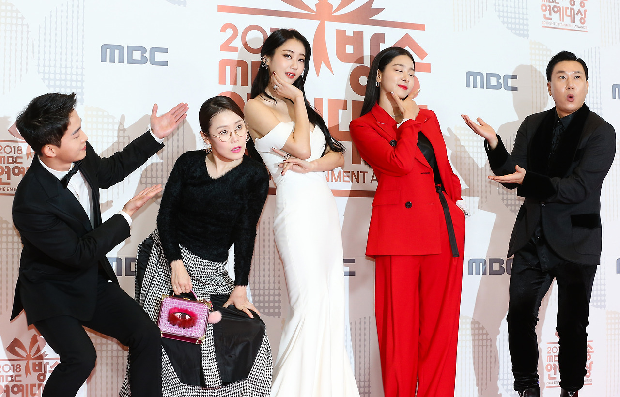 센션TV출연진들이 29일 오후 서울 마포구 성암로 상암MBC신사옥 미디어센터에 마련된 '2018 MBC방송연예대상' 포토월에서 포즈를 취하고 있다.