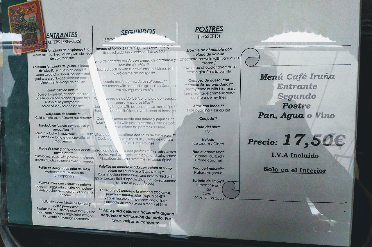 1. 헤밍웨이가 즐겨 찾았다는 '카페 이루나(cafe Iruna)'에서 오늘의 메뉴를 먹었다. 빵, 시작하는 요리, 메인 요리, 디저트, 물/와인 등으로 구성된 17.5유로짜리 코스 요리다. 낮에 왔다가 워낙 사람이 많아서 주문도 못 하고 기다리다 나갔다. 7시에 다시 연다는 말을 듣고 재차 시도, 성공했다. 한 끼 식사에 17.5유로는 과한 감이 있지만 헤밍웨이의 그곳이라고 하지 않나.