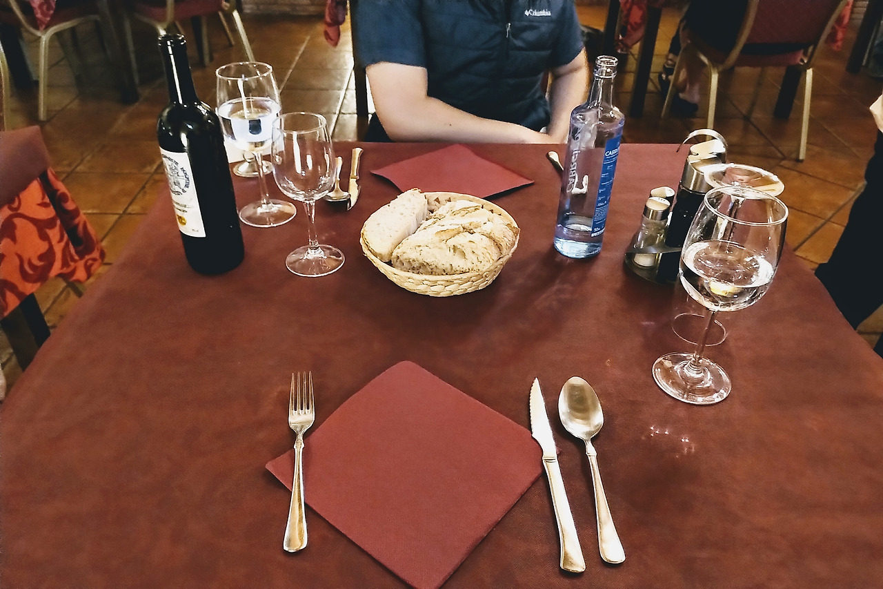 6. 오늘 먹은 순례자 메뉴는 비싸고 맛은 그닥이었다. 단지 허기졌고, 내일은 비가 내린다고 하니 뭐라도 먹어야 했다. 그런 이유로 무려 15유로를 내고 순례자 코스를 먹었다. 스파게티와 스테이크 , 치즈케이크로 구성된. 분위기만 호텔st.