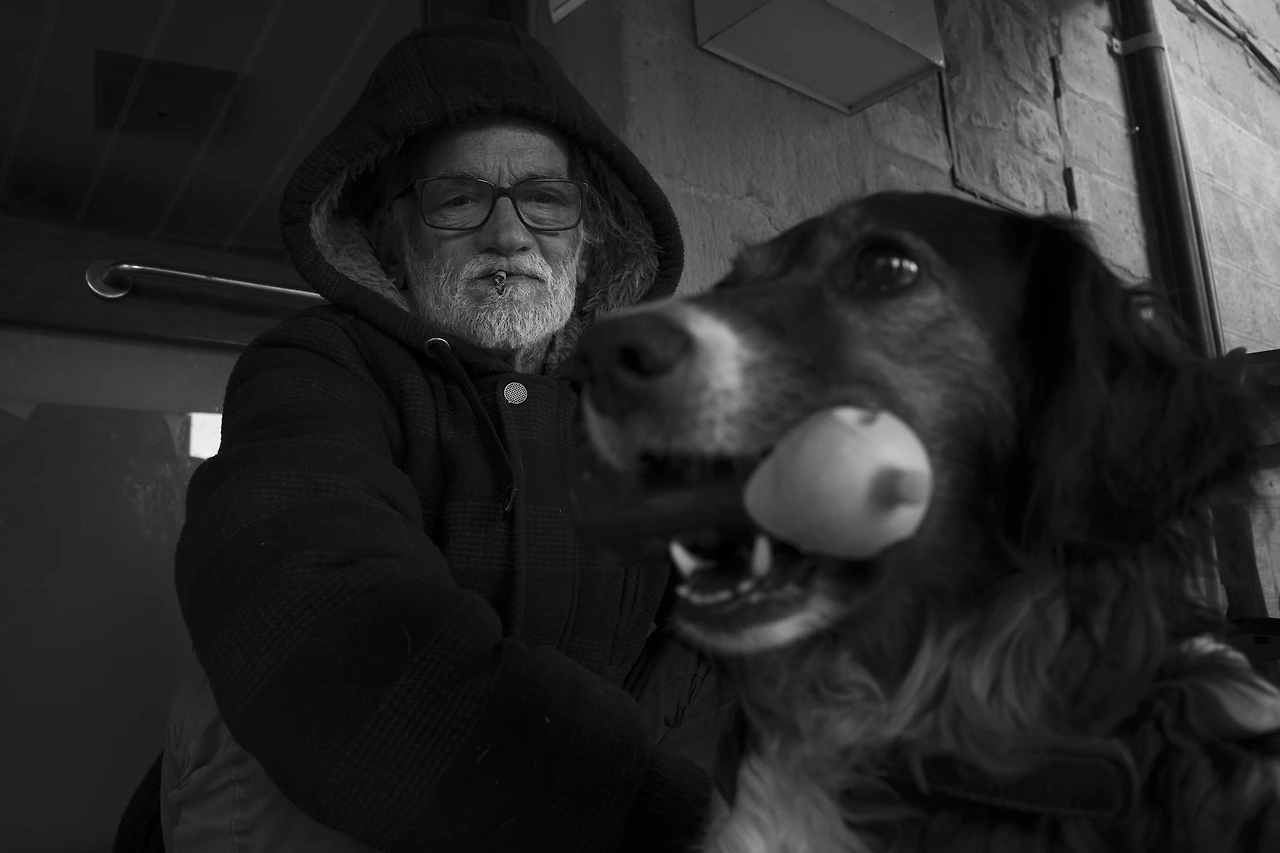 산티아고 시리즈 두 번째. 로스 아르고스에서 로그로뇨로 향하던 길 어느 슈퍼마켓 앞에서 만난 '키르기'와 할아버지. 출입문 앞에 앉아 손님들이 뭘 사는지 구경하는 개가 신기해 찍었다. 사실, 개를 워낙 좋아한다. 이 곳(스페인)은 약간 신기했던 게, 주인과 다니는 큰 개들은 저렇게 입에 뭘 물고 있다. 대도시에서 산책하는 대형견들도 마찬가지다. 따로 입마개를 하지 않는 것을 보면 아마 다니면서 사람을 물지 못하게 입에 물고 다니는 물건을 떨어뜨리지 않도록 훈련을 하는 게 아닐까 싶고. 물론 키르기가 물고 있는 건 그냥 자기 장난감이다. 놀자고.