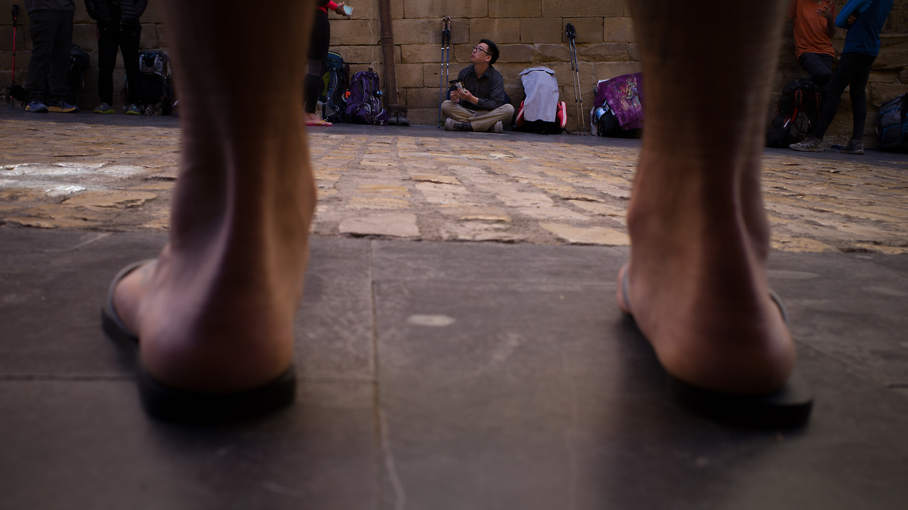 마르코다. 또 같은 숙소에서 묵게 됐다. 나중에 마르코가 얘기해주는데, 이들은 '칩피스트 원'을 찾아다닌단다. 우리는 같이 알베르게 벽면에 가방을 세워두고 개장을 기다렸다. 다른 순례자들과 이야기를 하거나 주변을 둘러보며 잠시나마 쉬었다. 그 찰나가 순례길에선 굉장히 의미 있게 다가온다. 충실한 하루하루 사이의 여유란 걸 체감하는 느낌이랄까.