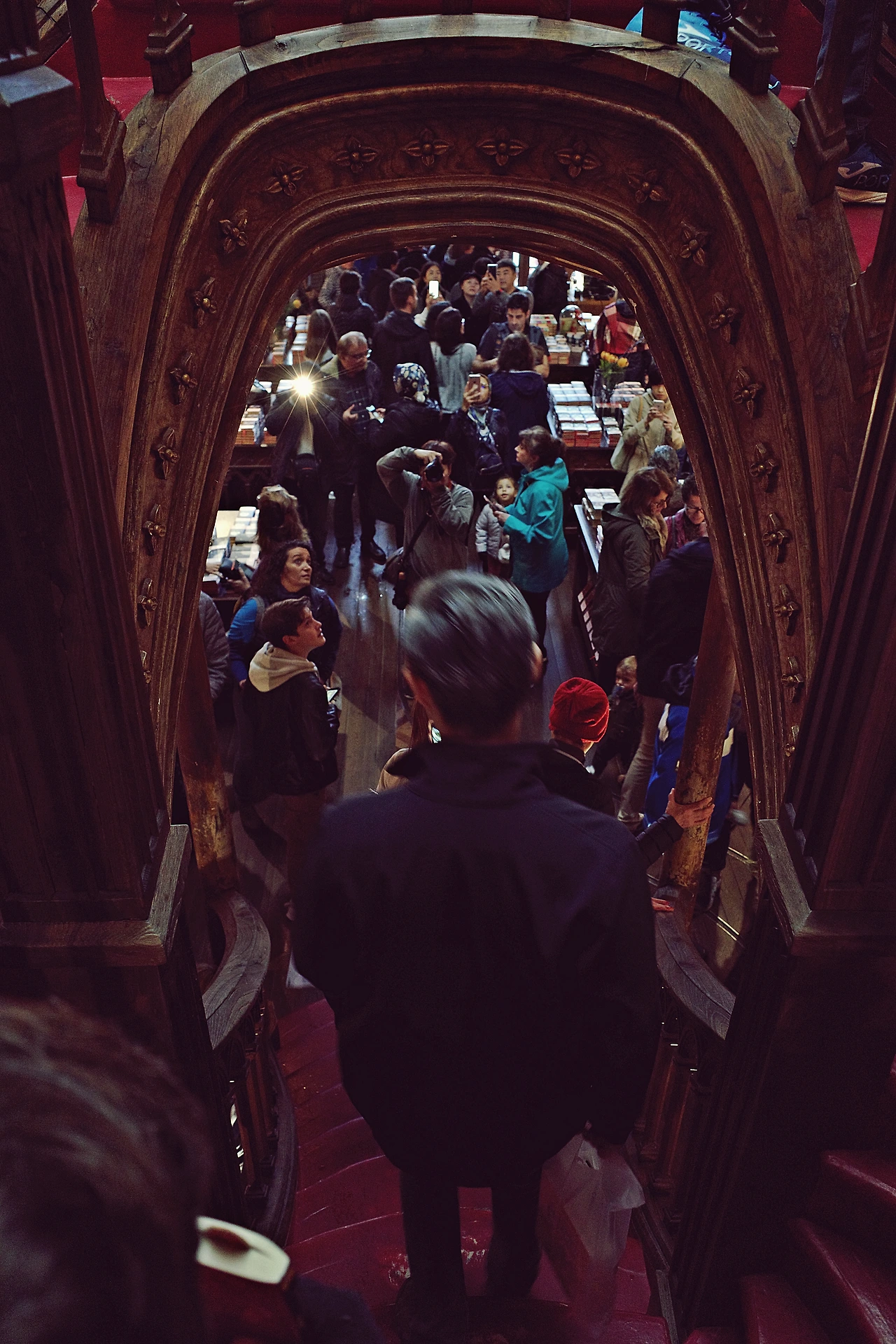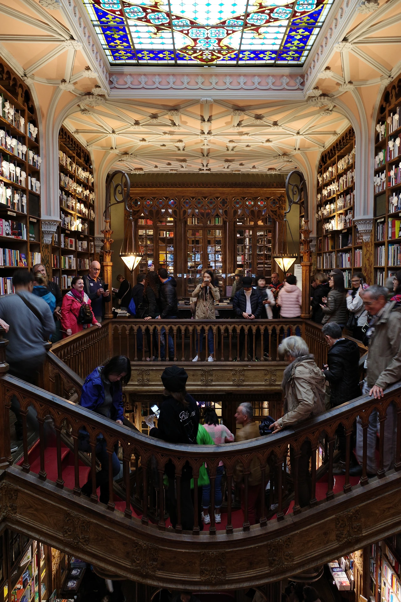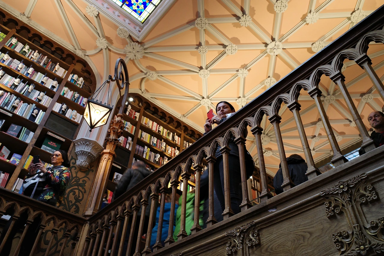 포르토엔 알려진 명소가 많다. 그중 렐루 서점은 <해리포터> 시리즈에 등장하는 '움직이는 계단'(호그와트 마법학교)의 모티브가 된 곳으로 유명하다. 작가 조앤 롤링이 여기서 영감을 얻었다고. 영국 가디언지는 이곳을 세계 10대 서점 중 한 곳으로 선정했다. 콘셉트가 독특하긴 했다. 하지만 '세계 10대'라는 네이밍은 다분히 상업적인 딱지 같다고 잠시 생각했다. 그 정도로 사람이 많았고 여유 있게 책을 둘러보기 힘든 환경이었다. 들어찬 사람을 구경하거나, 조형물을 관람하거나, 유명한 책을 기념품 삼아 구입하거나 그에 준하는 활동을 내부에서 할 수 있었다. 입장료(바우처)는 5유로, 책을 사면 그만큼 가격을 차감해주는 방식이었다. 나도 두어 권 만지작 거리다가 배낭 무게가 떠올라 제자리에 꽂아놓았다. 그 뒤로 여느 관광객처럼 사진을 찍었는데 문득 JK 롤링이 보던 풍경은 이게 아니었을 것이라는 데 생각이 미쳤다. 아래는 관광객이 보는 렐루의 단면들.