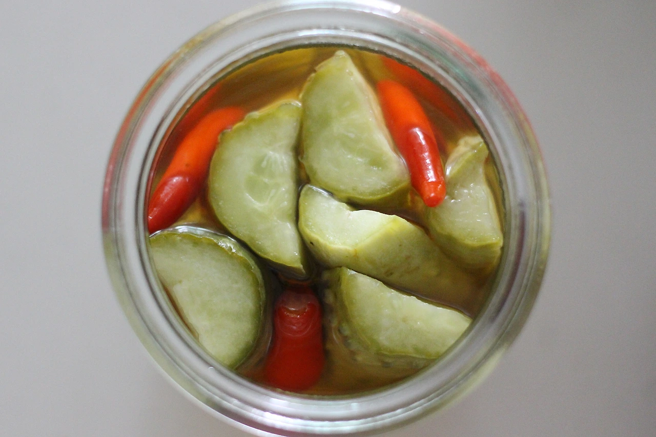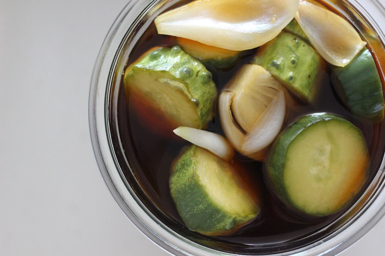 날씨가 슬슬 더워질 때면 아침은 요거트나 계란, 간단한 채소 요리를, 저녁도 대부분 메인 요리 한 가지를 만들어 먹는다. 애써 반찬을 만들어 쟁여놓은들 금세 쉬어버려서 다 먹지 못하고 버릴 때가 많았기 때문. 그렇다고 해서 또 아예 안 만들어 놓자니 반찬 두세 가지 꺼내 간단히 밥 한 끼하고 싶을 때 그렇게 아쉬울 수 없었다. 이러한 이유로 여름이 오면 이런저런 반찬 대신에 절임 반찬 두세 가지를 늘 만들어 두게 되었다. 절인 음식은 미생물 증식이 어려워 저장성이 높기도 하지만 만들기도 간단. 조미료마저 가볍다. 소금과 설탕, 식초, 간장 정도면 충분. 모두 다 냄비에 넣어 끓이기만 하면 되니까 레시피마저 심플 그 자체다. 무엇보다도 단 하나의 레시피를 익혀 두고서 다양한 채소에 적용하기만 하면 되니까 이보다 더 좋을 수 있을까.