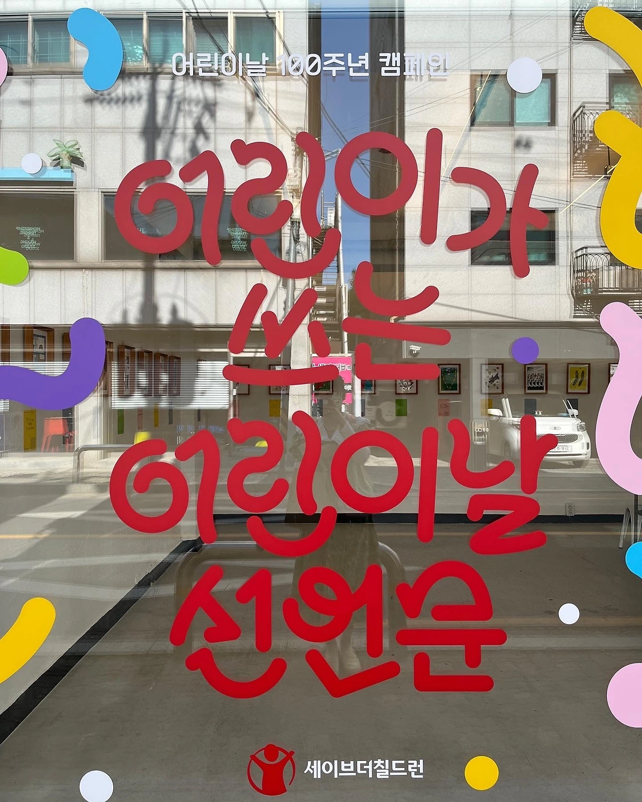 세이브더칠드런에서 주최하는 <어린이가 쓰는 어린이날 선언문> 전시.