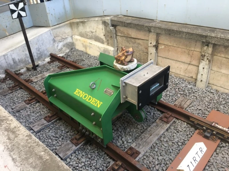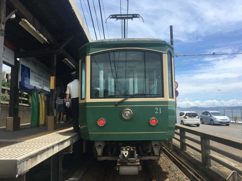 가마쿠라와 에노시마는 '에노덴'이라는 초록색 노면전차로 연결되어 있다. '에노덴'을 타러 가는 길, 기다랗게 놓인 상점을 구경하면서 걷다 보니 독특하게 생긴 건물이 보인다. 열차와 관련된 굿즈를 팔고 있었는데 열차 모형 장난감이나 동전 지갑 등 종류가 꽤 많았다.