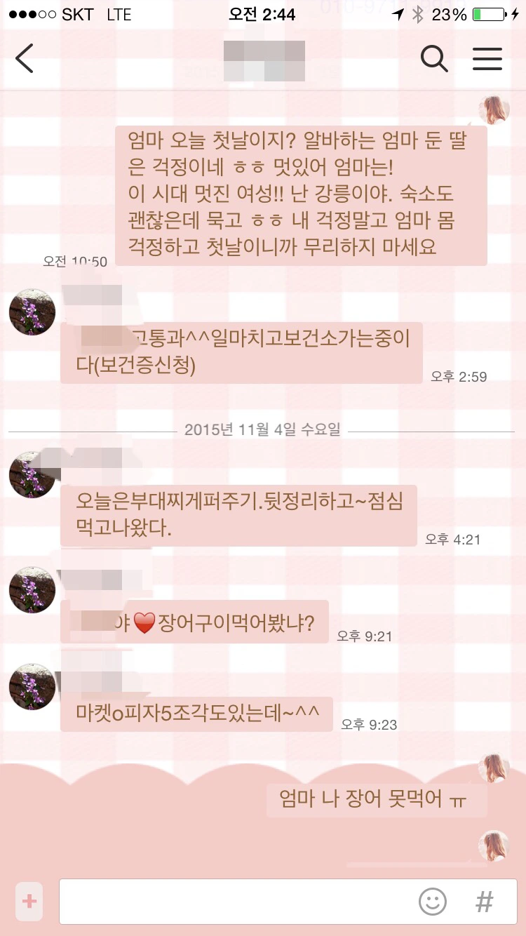 그러나 10분 뒤, 엄만 다시 톡을 보냈다.