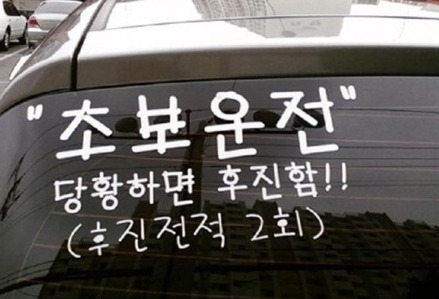 붙이거면 차라리 시중에 판매하는 스티커보다 A4용지에 인쇄한 걸로 갖다 붙이자. 할 거면 '진지하게' 궁서체로 '초보' 또는 '초보운전'이라고 간단명료하게 적는 게 좋다. 초보운전 스티커를 붙이는 진짜 이유를 뒤차는 아주 직관적으로 느낄 수 있다. 게다가 붙이고 떼기도 좋고 비용도 거의 안 든다. 이 얼마나 좋은가?