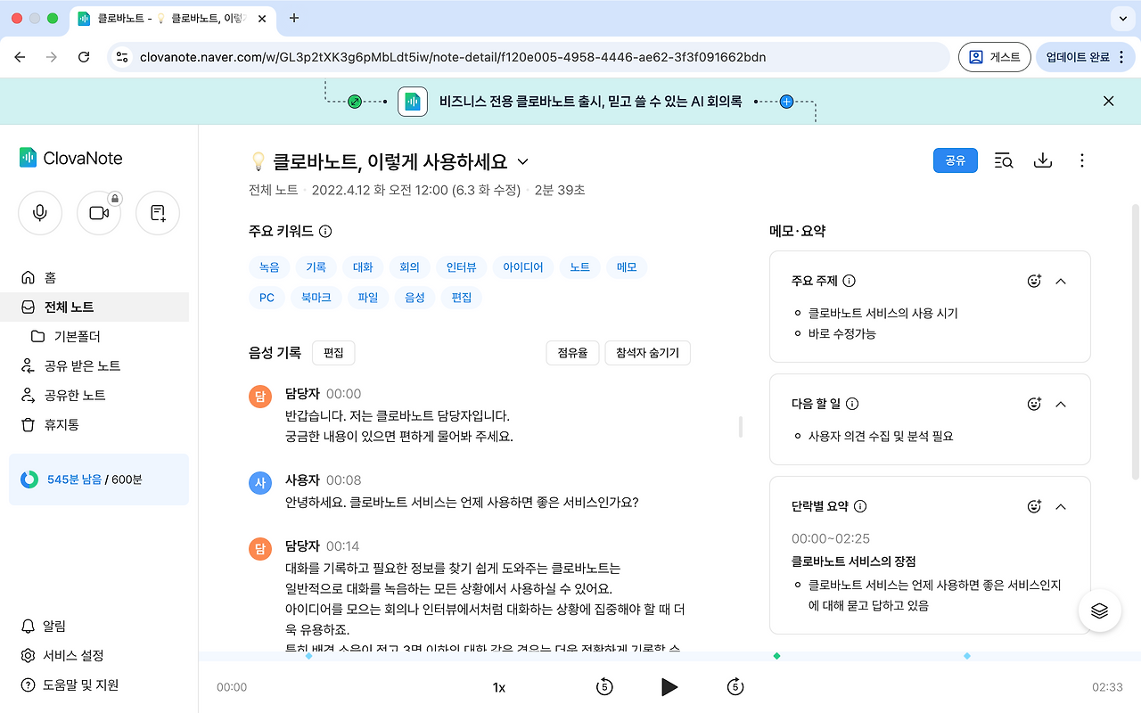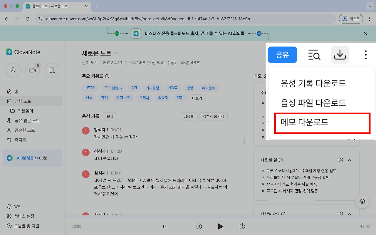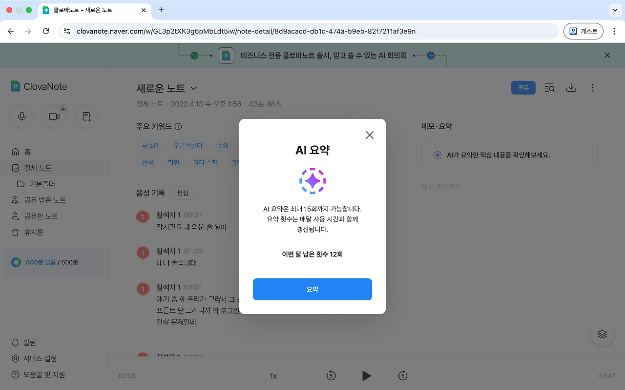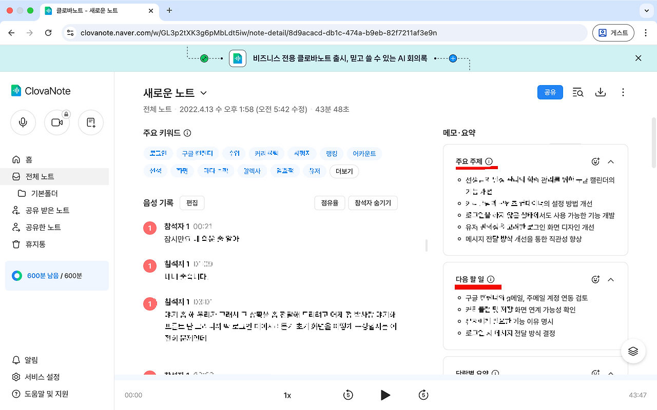 회의 내용 텍스트 변환, AI 회의 주요내용 요약 정리