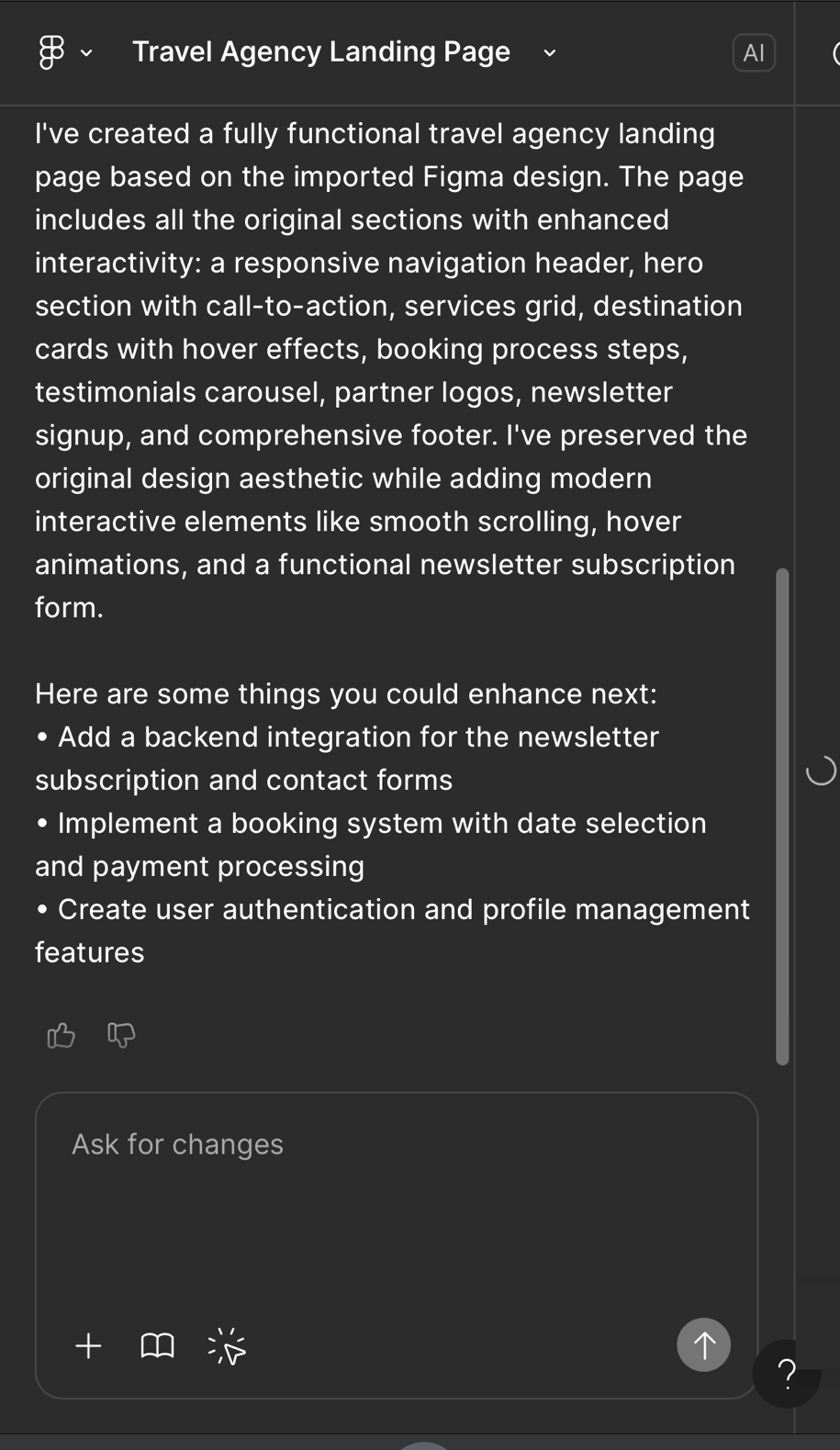 피그마에 만들어진 디자인파일을 복사해서 프롬프트 창에 붙여넣으면 해당 디자인파일을 퍼블리싱해주는데요. 이전에 퍼블리싱하는 방법으로 직접 프롬프트작성, 이미지 파일첨부하는 방법을 소개 했었는데요.