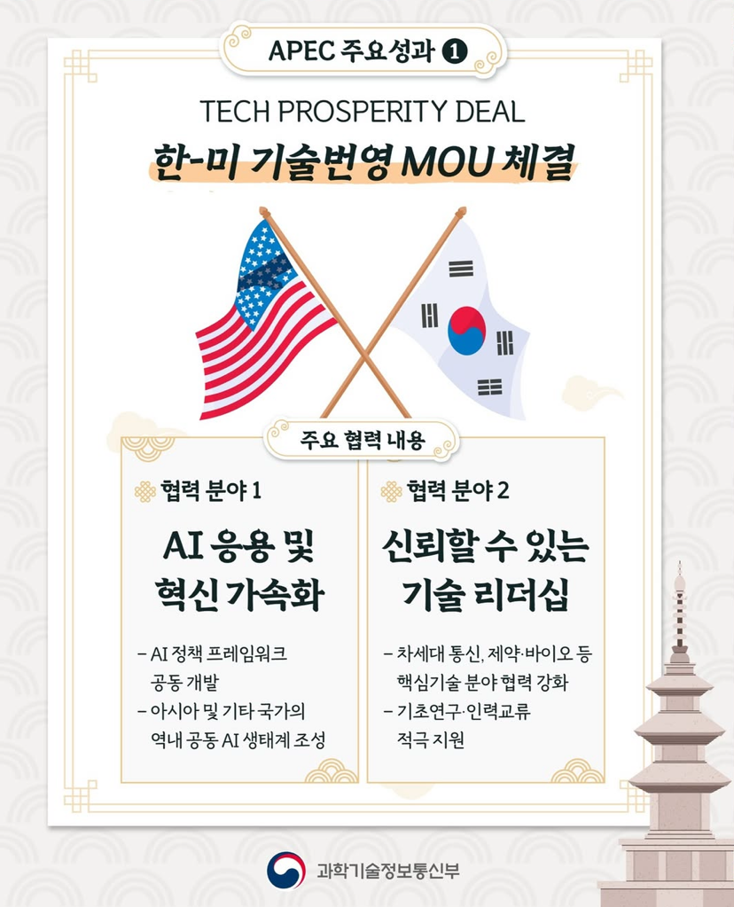 - 과기정통부는 이 MOU가 “경제·안보·산업 측면에서 한-미 과학기술 협력관계를 굳건히 하는 기반”