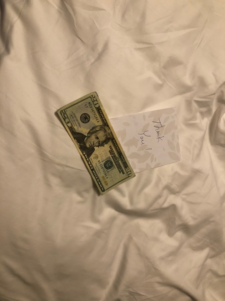 하우스키핑 일을 하다 보면 뜻밖에 행운을 맞이하기도 한다. 바로 팁이다. 북미에서는 팁 문화가 잘 발달되어있다. 식당 같은 곳에서 밥을 먹거나 술을 마시면 팁을 내는 경우가 있는데, 하우스키핑에서도 종종 발견할 수 있다. 하지만 모든 일이 그렇듯 기대가 크면 실망도 큰 것처럼 기대를 품고 방을 들어가면 팁이 없는 경우가 대부분이었다. 그러다 아무 생각 없이 들어갔을 때 팁을 발견하는 경우가 더 많은데 이때 기분은 큰 노력 없이 행복을 싼 값으로 산 느낌이었다.