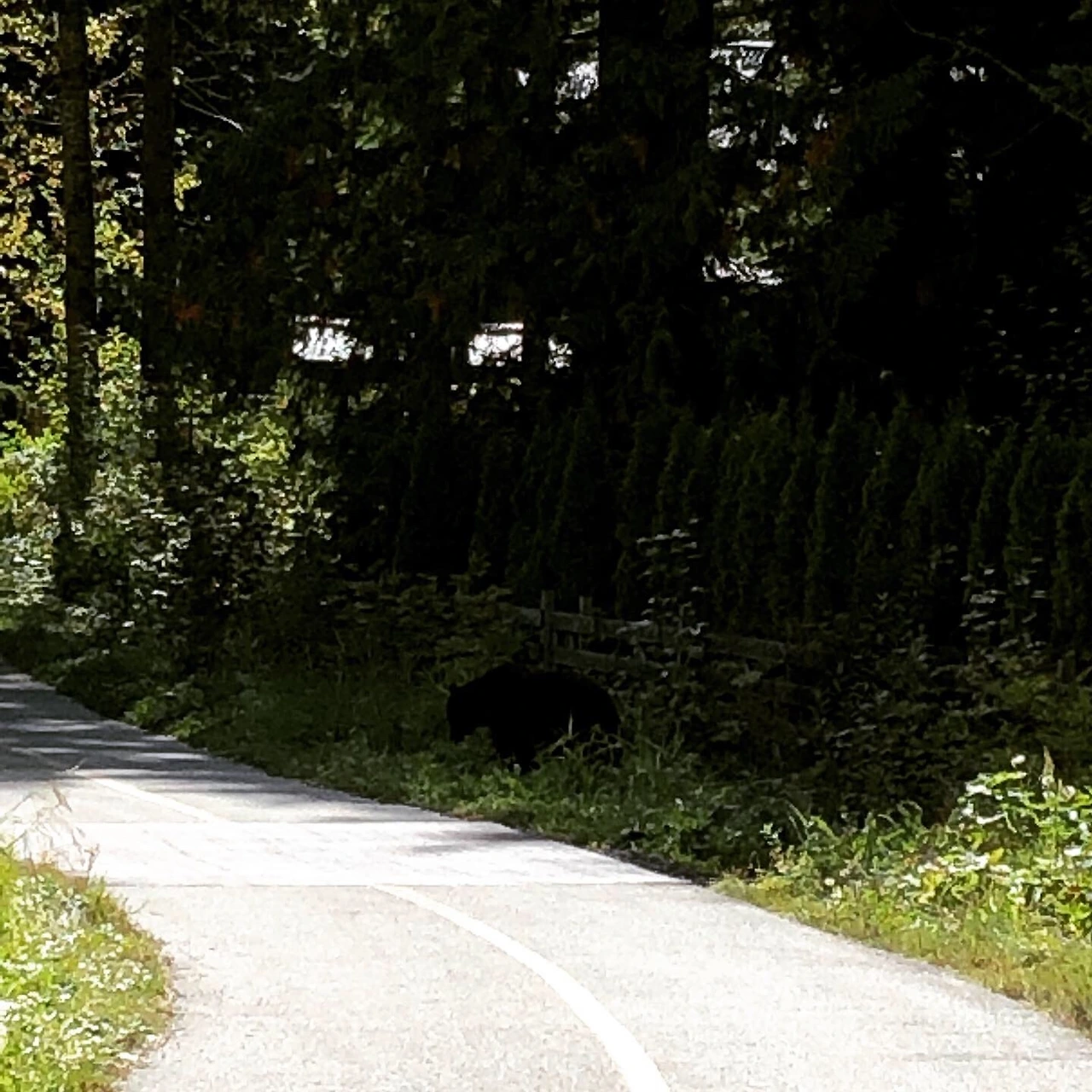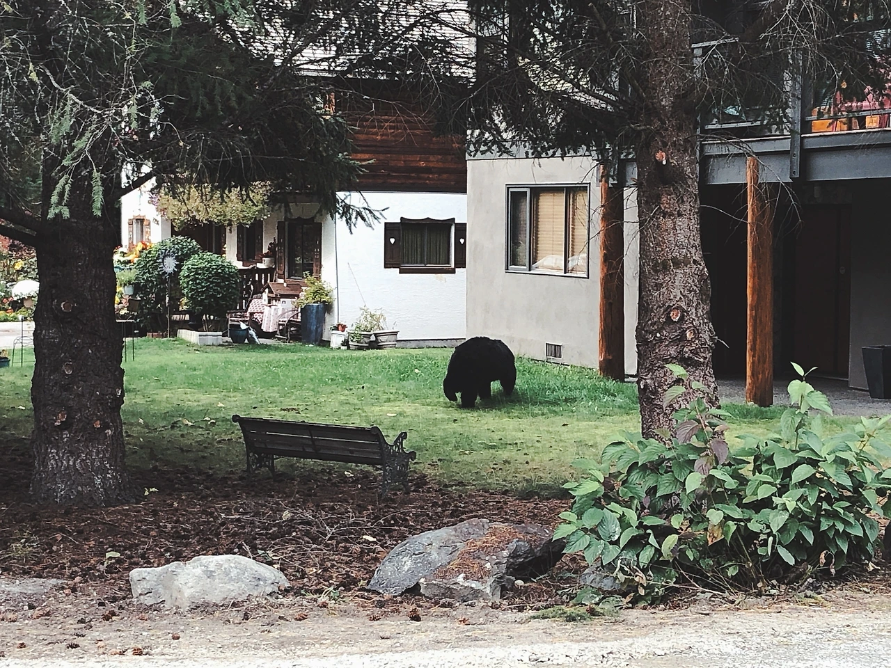 집 앞이나 도심에서도 발견된다. 휘슬러 타운 하우스에서 살았었을 때, 집 앞마당에서 커피를 마시다가 곰을 마주한 적이 있다. 새끼곰이었다. 주변에 어미가 있을 수 있으니 집 안으로 황급히 피신했다. 옆 집 큰 개가 짖자 새끼곰은 배설물을 배출하며 나무 위로 도망갔다. 새끼곰은 커피 냄새를 맡고 온 곰이었을까. 집주인은 종종 곰이 출몰하니 집 앞에 쓰레기를 내놓으면 안 된다고 주의를 주었다. 도심 곳곳에 있는 쓰레기통들도 곰이 뒤지지 못하게 고정되어있고, 쉽게 열지 못하도록 만들어졌다.
