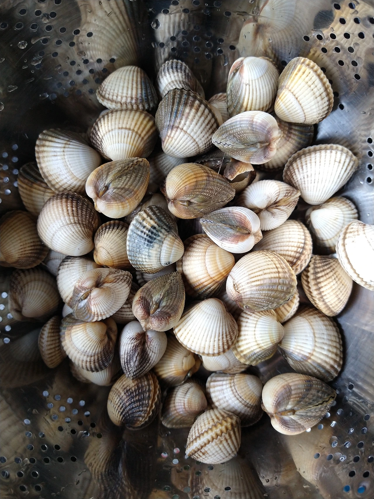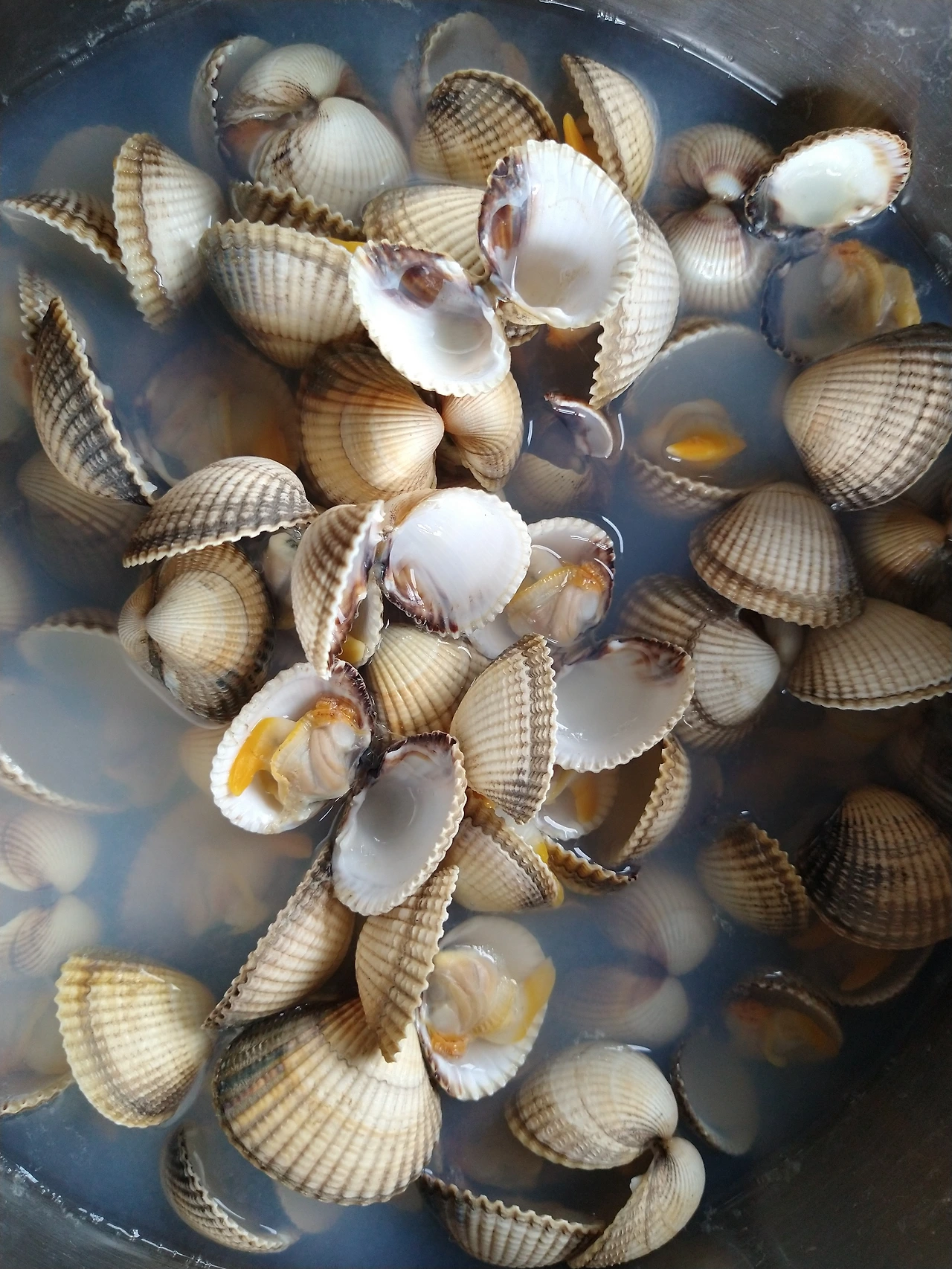 집으로 오자마자 해캄하기 위해 물에 담가 검은 봉지로 덮어놓았다. 다음날 아침 깨끗이 씻어 끓는 물에 넣고 조개입이 벌어지자마자 불을 끄고 조개를 건저 살을 따로 발라놓았다. 그리고 혹시 냄비 바닥에 가라앉아있을 모래나 조개껍질 조각들을 분리하기 위해 조개 삶은 물을 천천히 큰 그릇에 따라서 담아 놓았다.