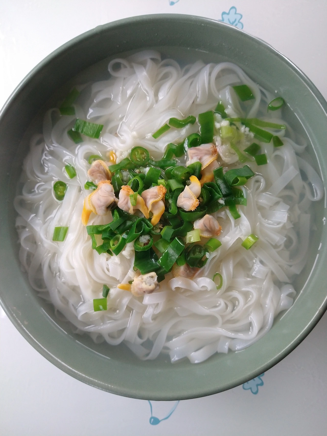그리고 그 따라낸 물을 다시 냄비에 붓고 마늘, 매운 고추, 파를 썰어 넣고 소금간하여 한소끔 끓여 미리 삶아놓은 쌀국수에 부어 한 그릇 거하게 먹었다. 오랜만에 먹어보는 감칠맛 끝내주는 깔끔한 새조개 쌀국수 정말 꿀맛이었다.